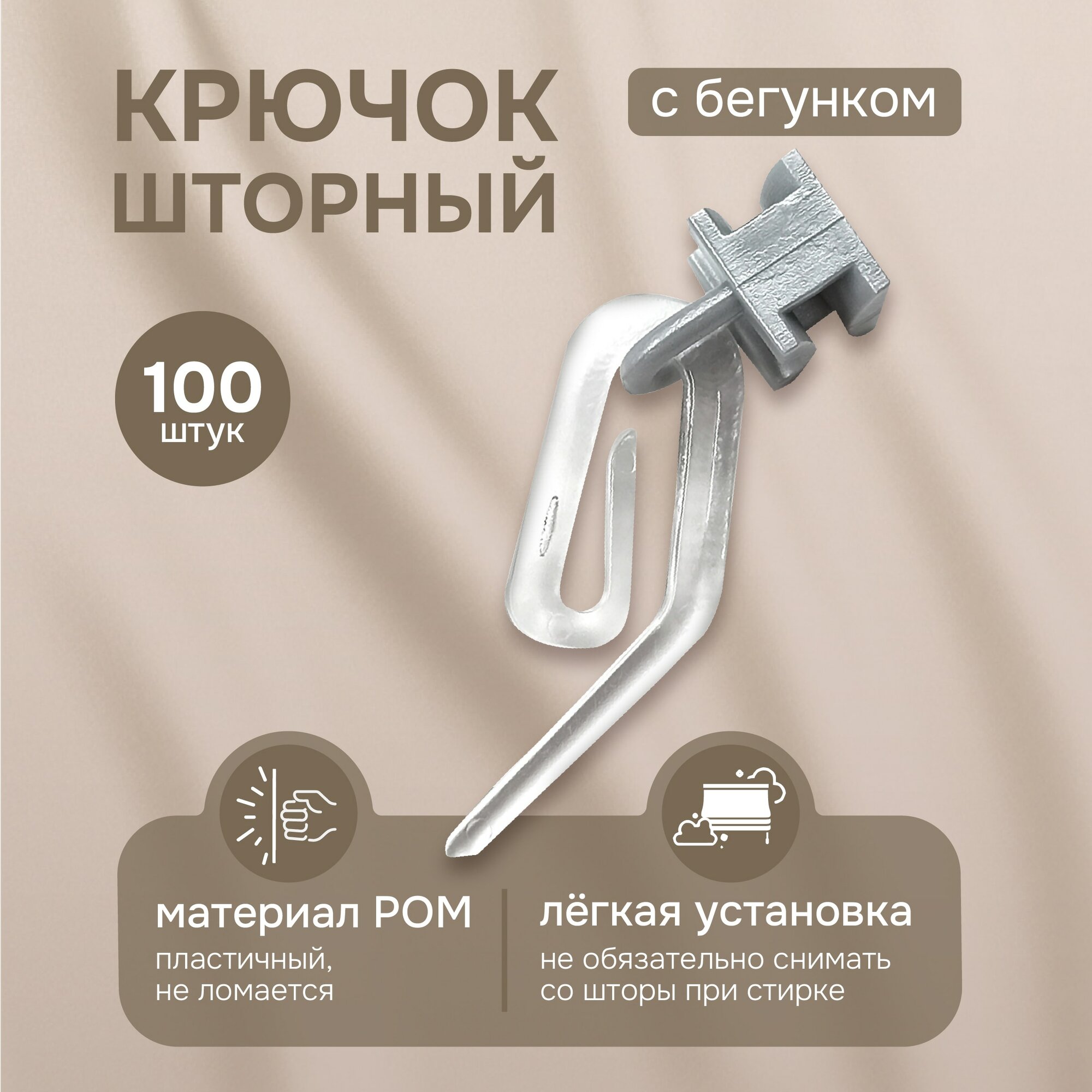 10 цен на Крючок шторный с бегунком, прозрачный/серый, 100 шт, арт.222240442