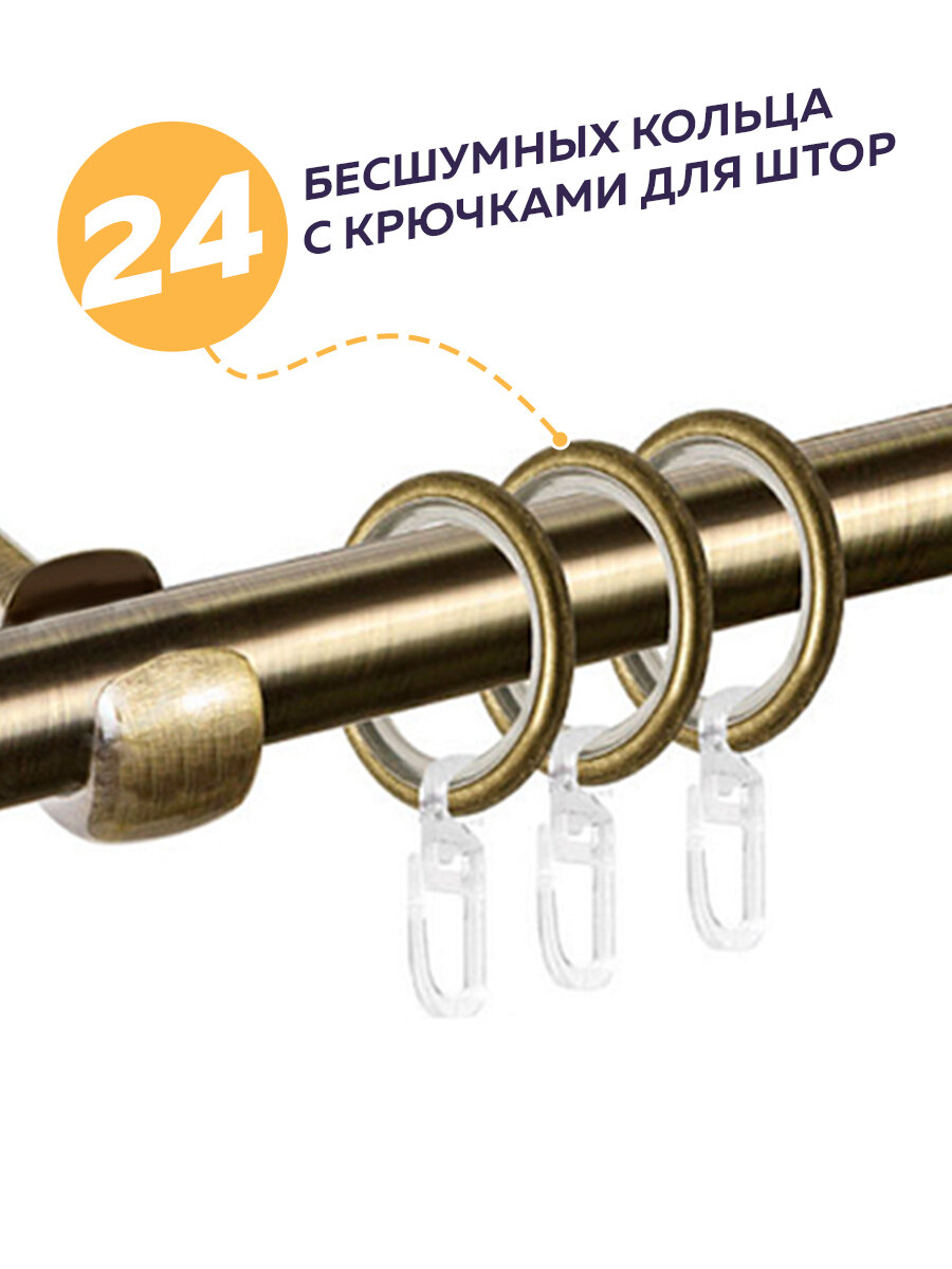 Карниз для штор настенный круглый двухрядный металлический бесшумный 240см Mirtex Premium Антик 25/16мм составной гладкий, гардина для штор 3 750 ₽