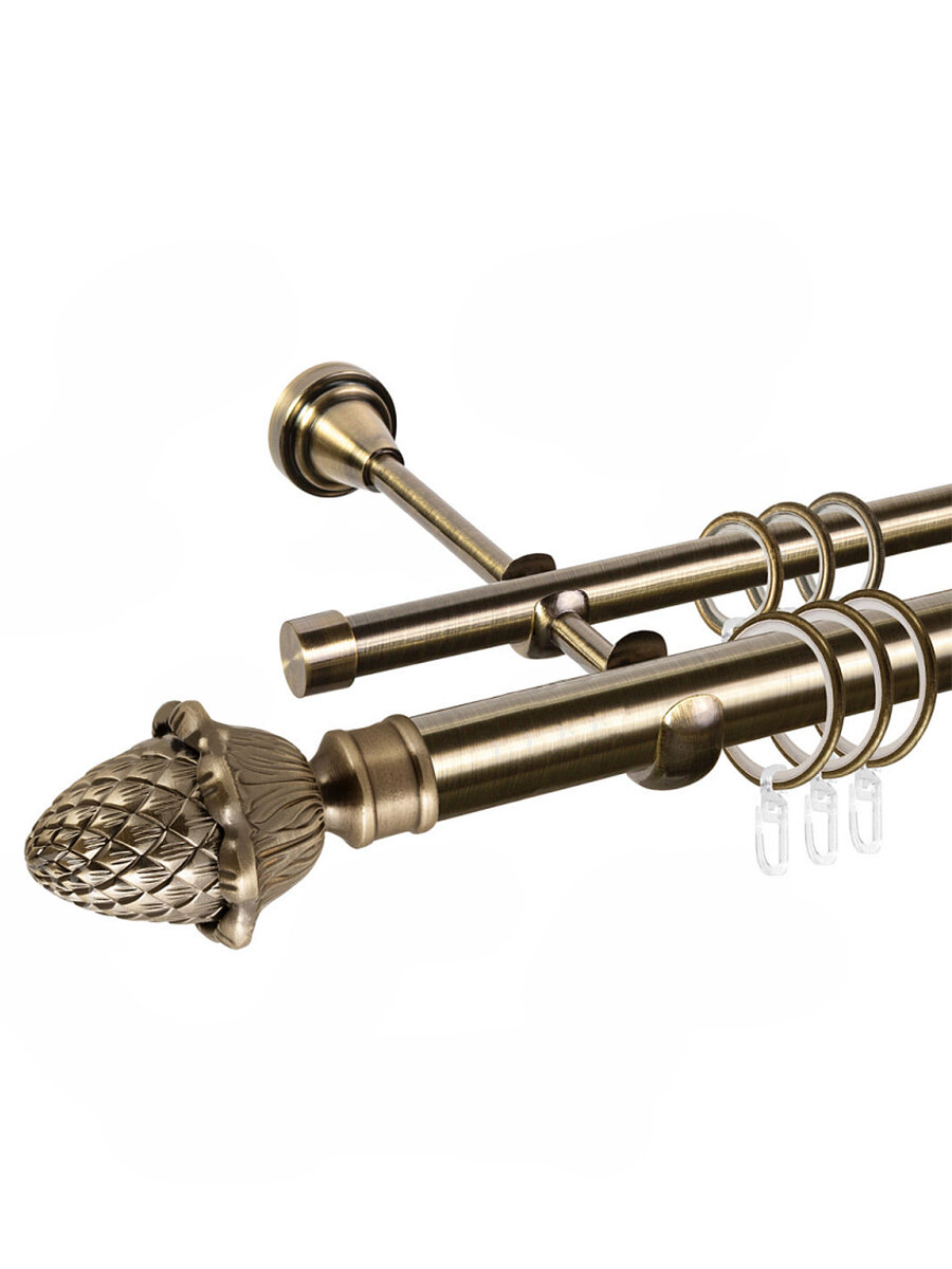 Карниз для штор двухрядный металлический гладкий Mirtex "шишка" 25/16 мм цвет Антик, длина 2,4 м. информация: