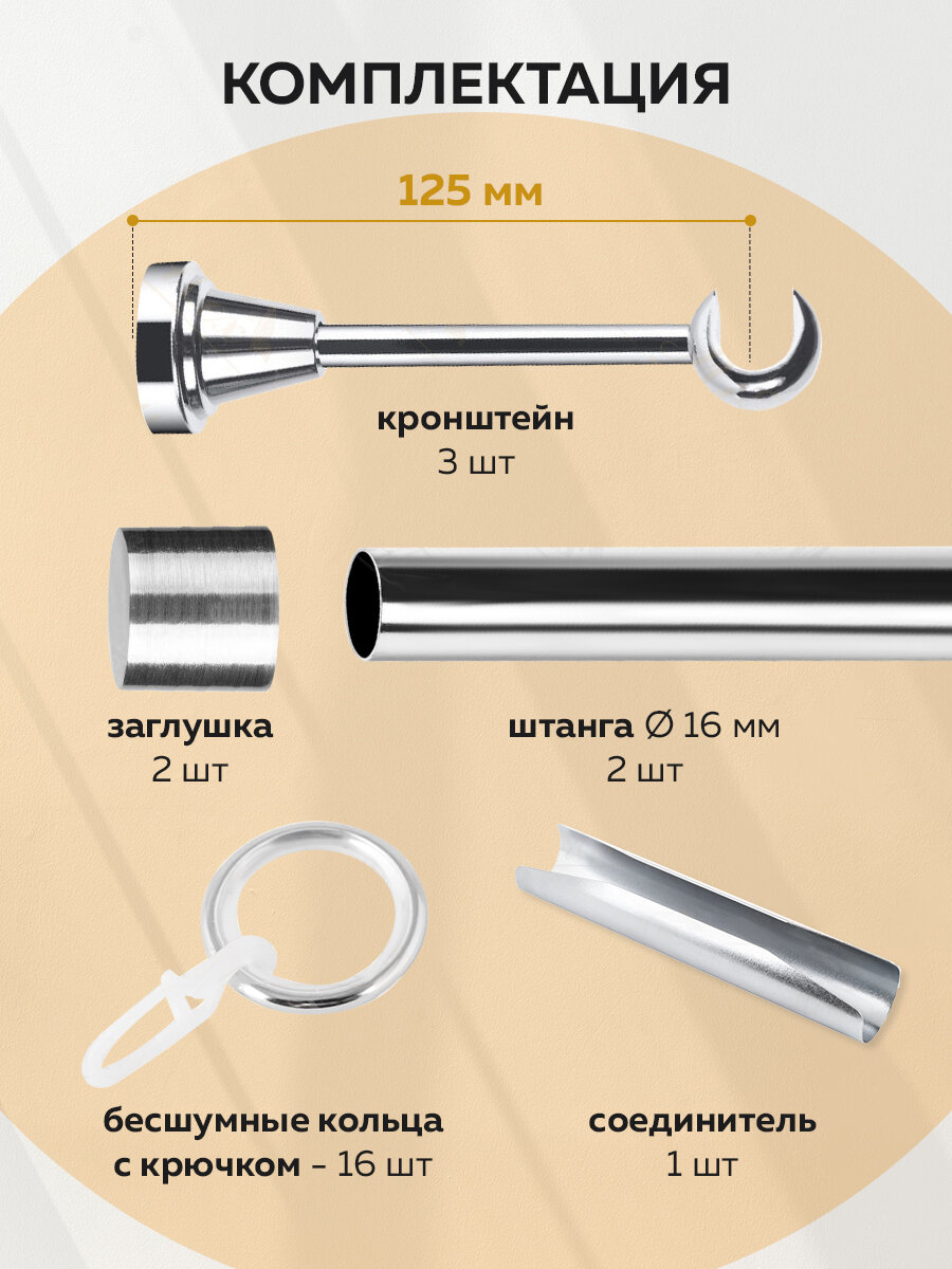 Отзывы на Карниз для штор однорядный 16х16см 160 см, цвет хром, составной, металл, Mirtex