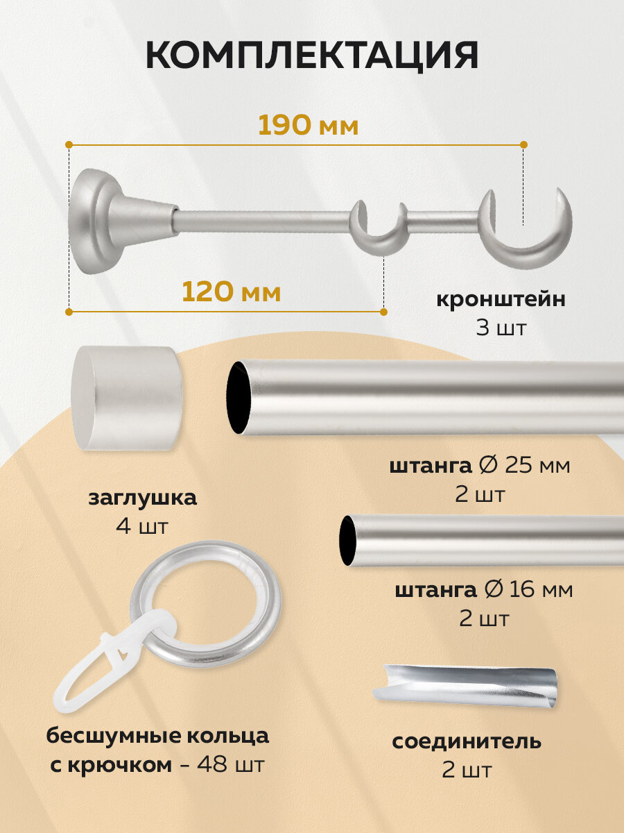 Карниз для штор настенный круглый двухрядный металлический бесшумный 240см Mirtex Premium Сатин 25/16мм составной гладкий, гардина для штор 4 700 ₽