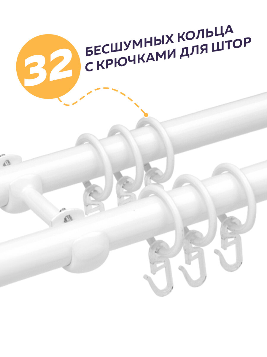 Карниз для штор Mirtex Premium 240х19 двухрядный сатин с бесшумными кольцами 3 650 ₽
