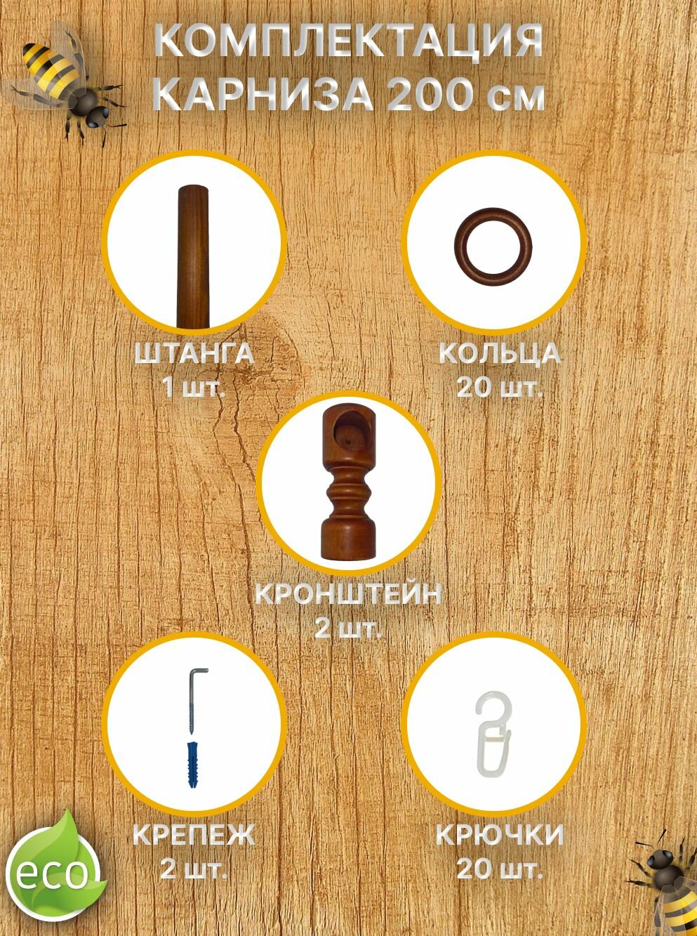 Кольца для карниза (дерево) с крючками на карниз д 28 мм-20шт