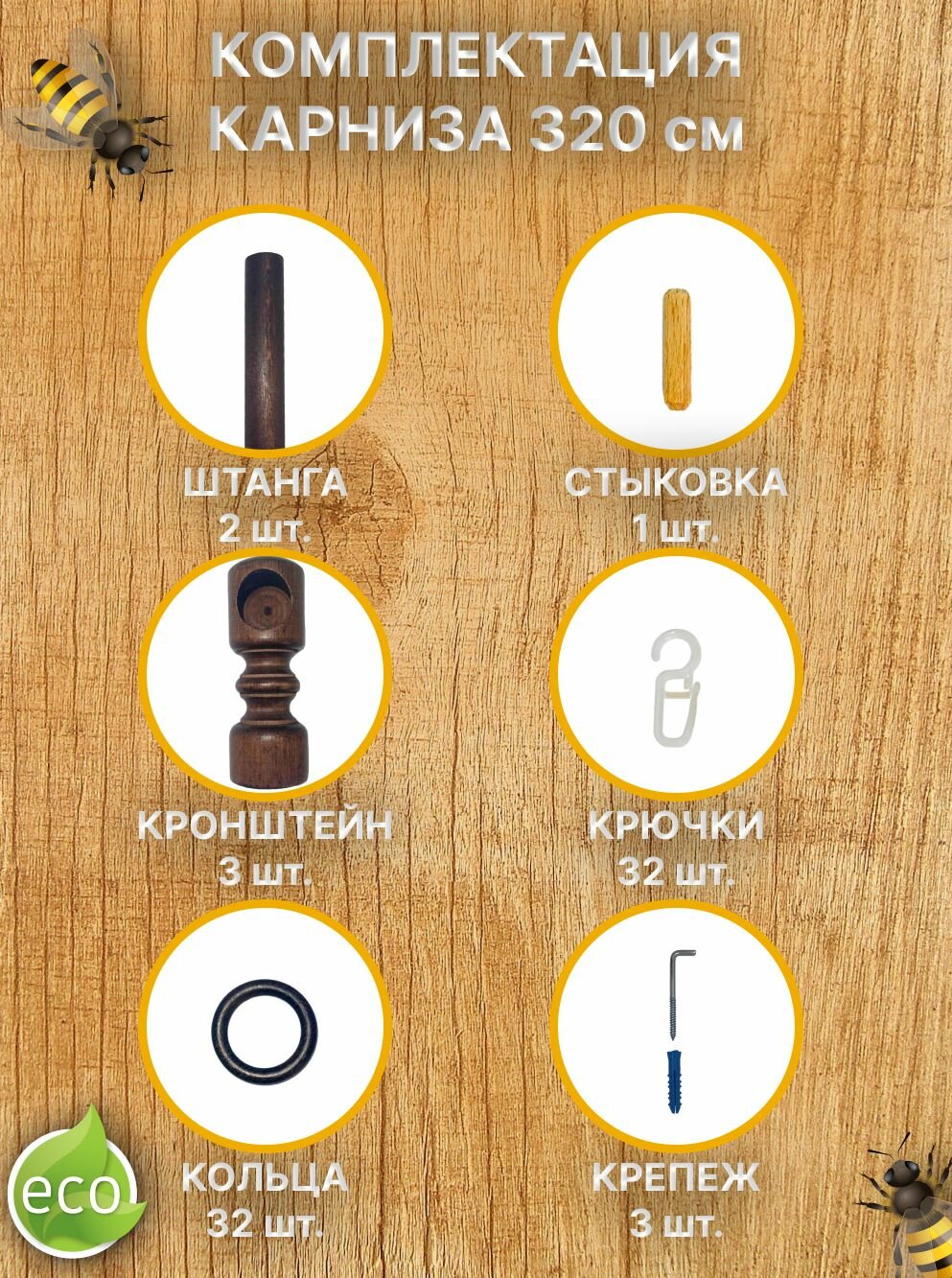 Кольца для карниза (дерево) с крючками на карниз д 28 мм-20шт