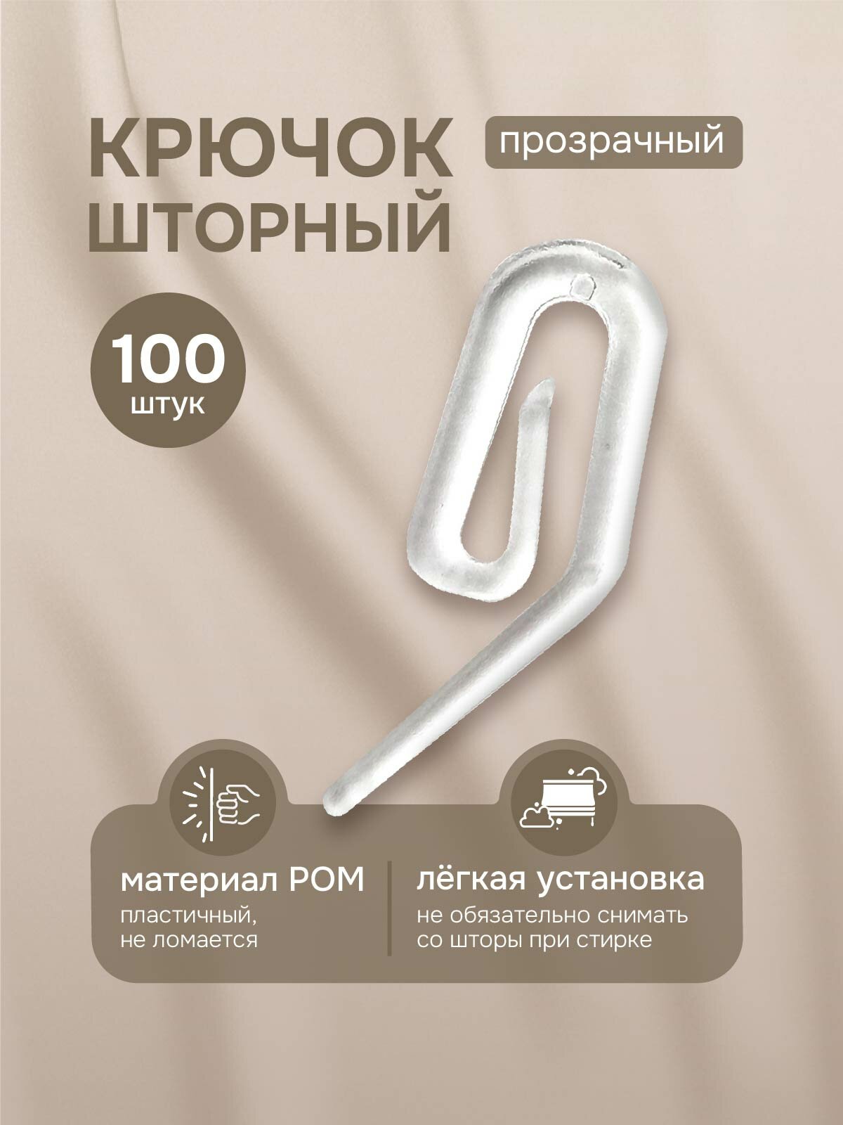10 цен на Крючок шторный, прозрачный, количество 100 шт, арт.222240443
