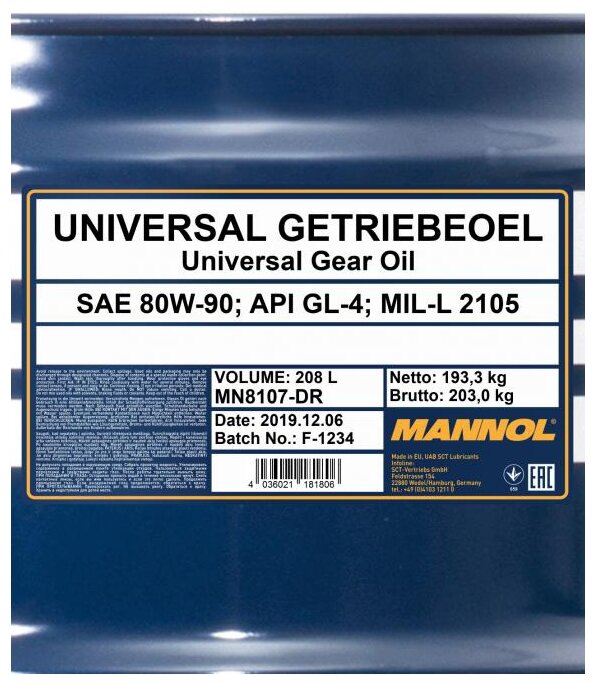 Отзывы на Масло трансмиссионное MANNOL 80w90 минеральное Universal Getriebeoel 208л
