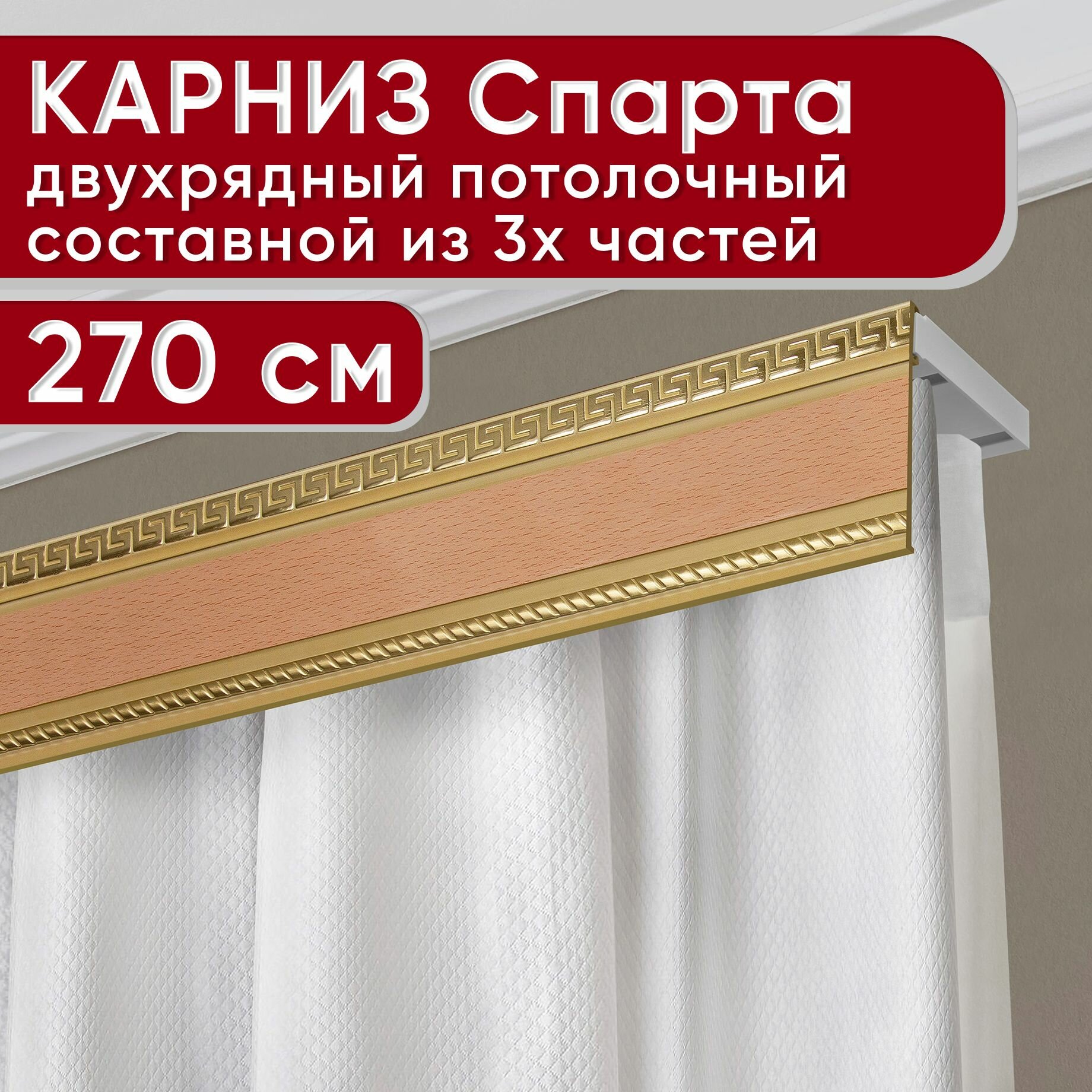 Карниз двухрядный потолочный пластмассовый с декоративной планкой Тесей, бук 270 см информация: