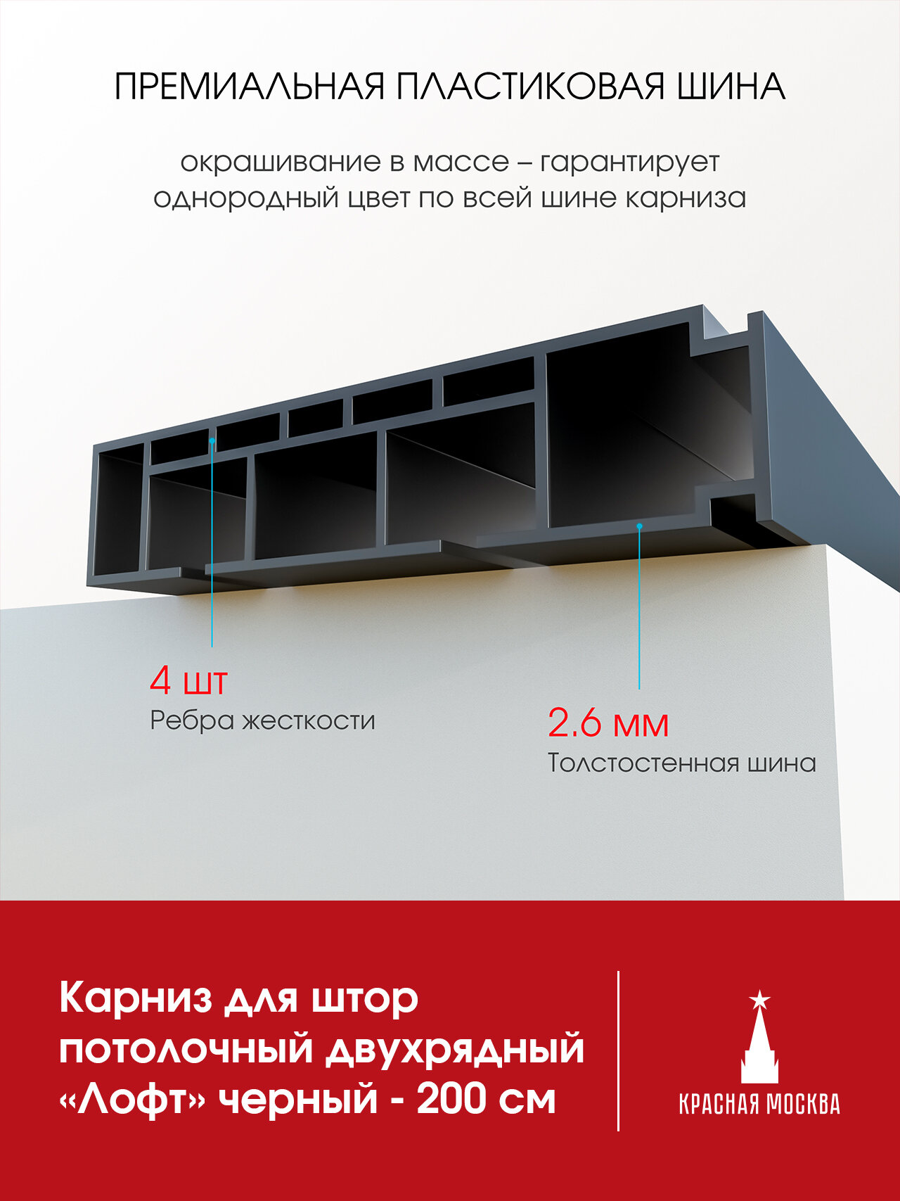 Карниз для штор потолочный двухрядный черный Лофт 2 ряда, прямой, 200 см информация: