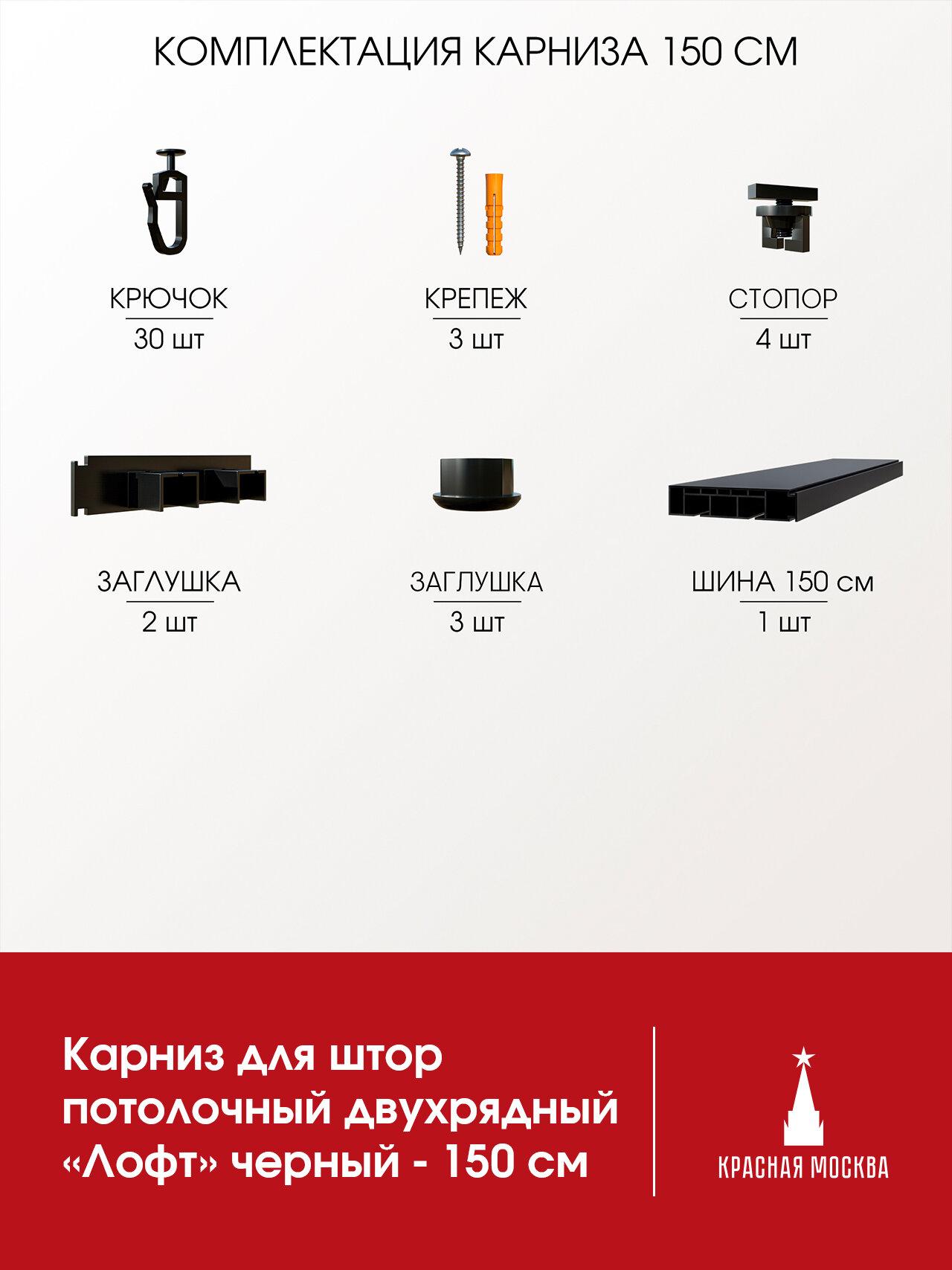 Карниз для штор потолочный двухрядный черный Лофт 2 ряда, прямой, 150 см информация: