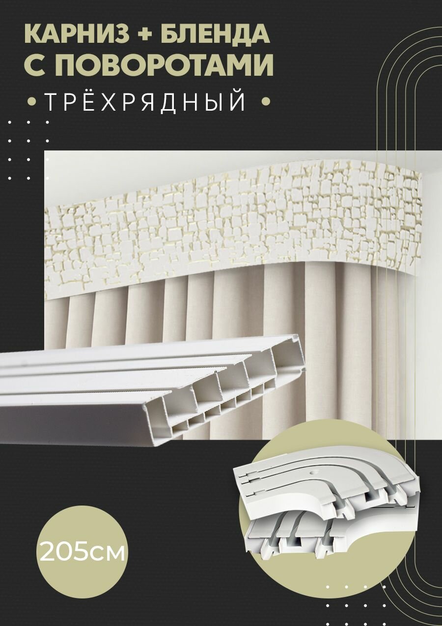 10 цен на Карниз для штор трехрядный потолочный, 205 см, поворотный, с блендой кайман 01.