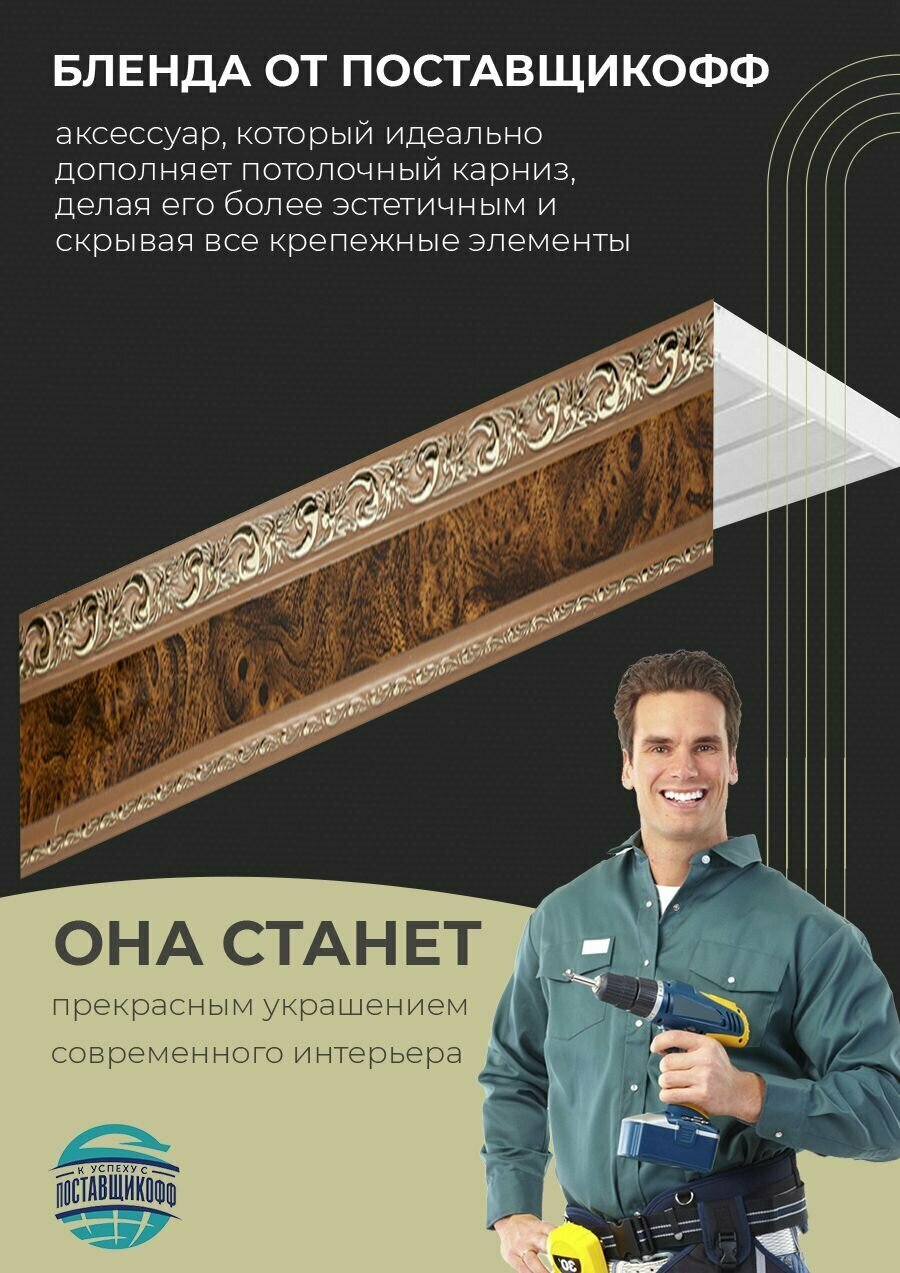 Карниз для штор трехрядный потолочный, 185 см, поворотный, с блендой модерн 04. 1 983 ₽