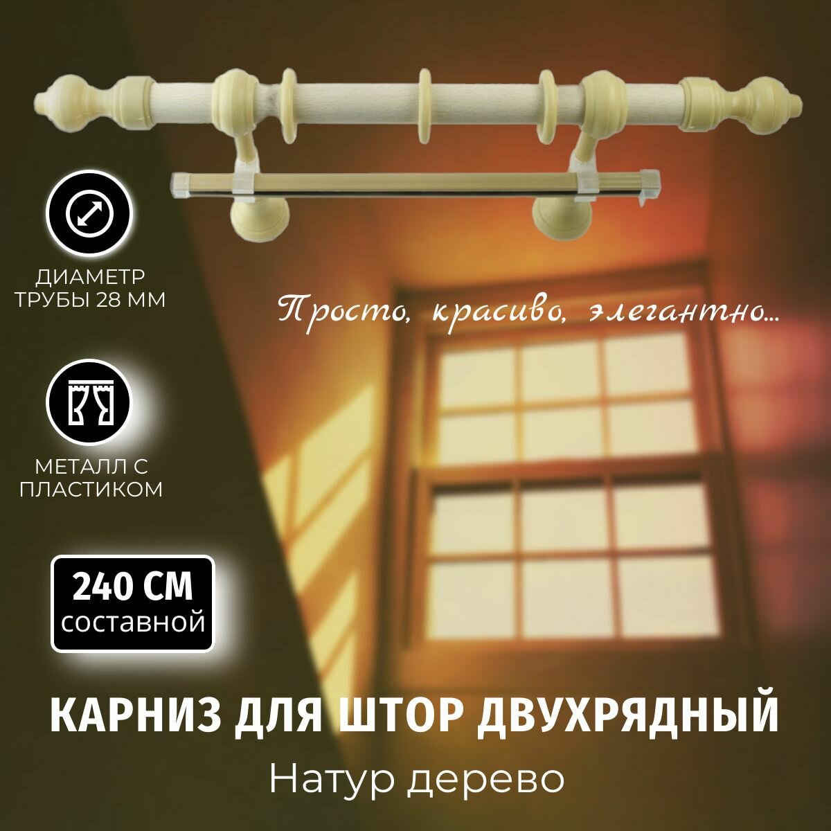 Карниз для штор Металлопластик Натур дерево 2,4м составной информация: