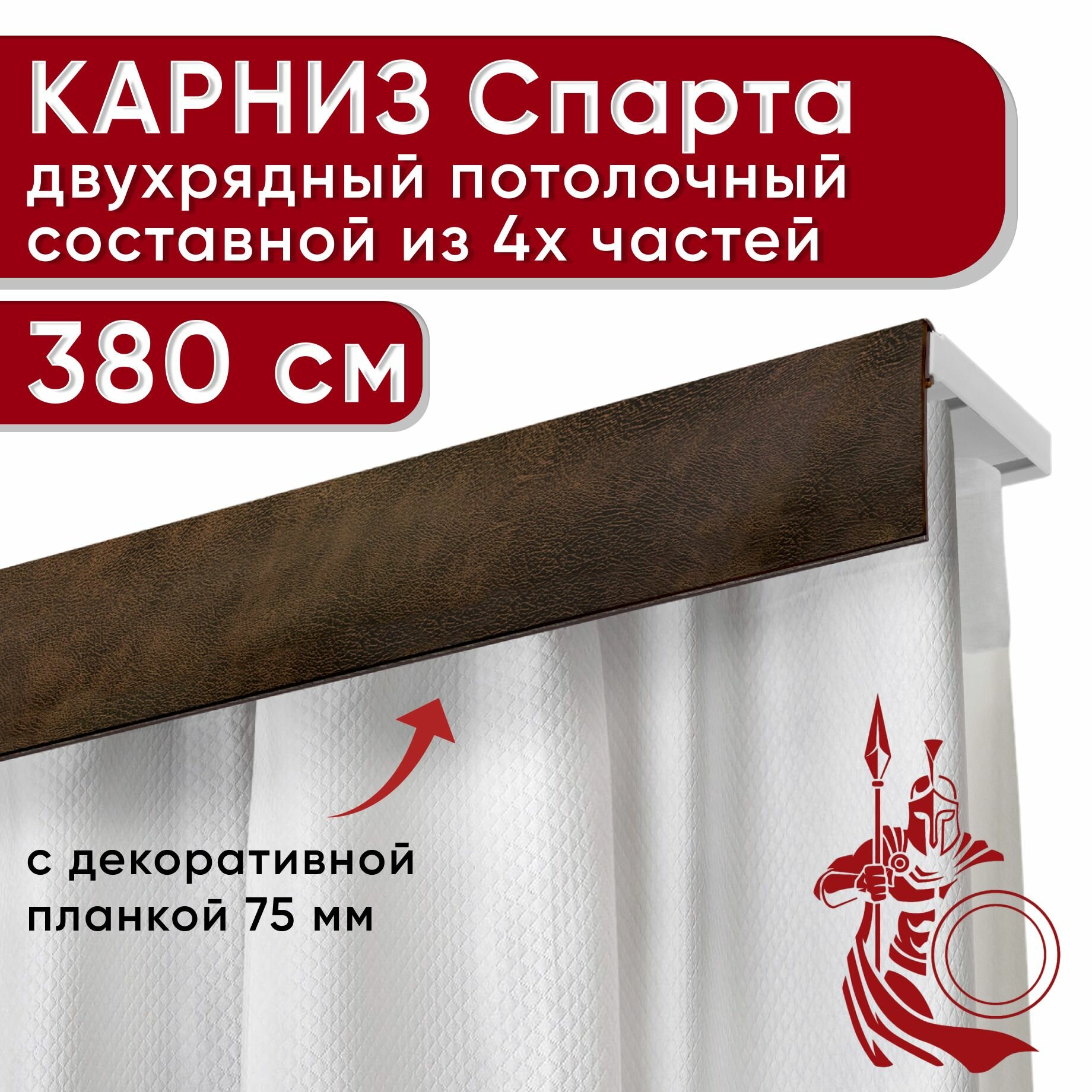Карниз двухрядный потолочный пластмассовый с декоративной планкой Спарта 75, шагрень темно-коричневый 380 см информация: