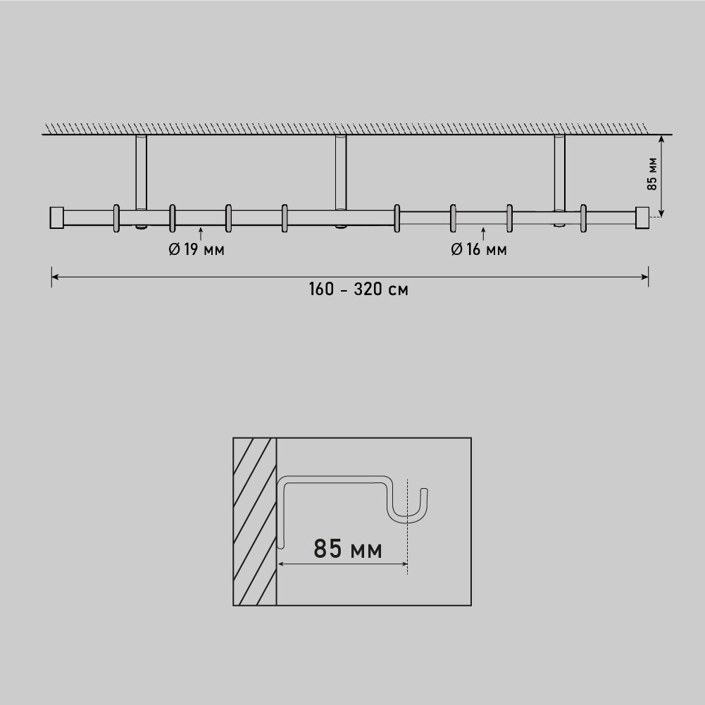 Карниз для штор Трансформер 19/16 мм однорядный шар 160/320см Черный Скин информация:
