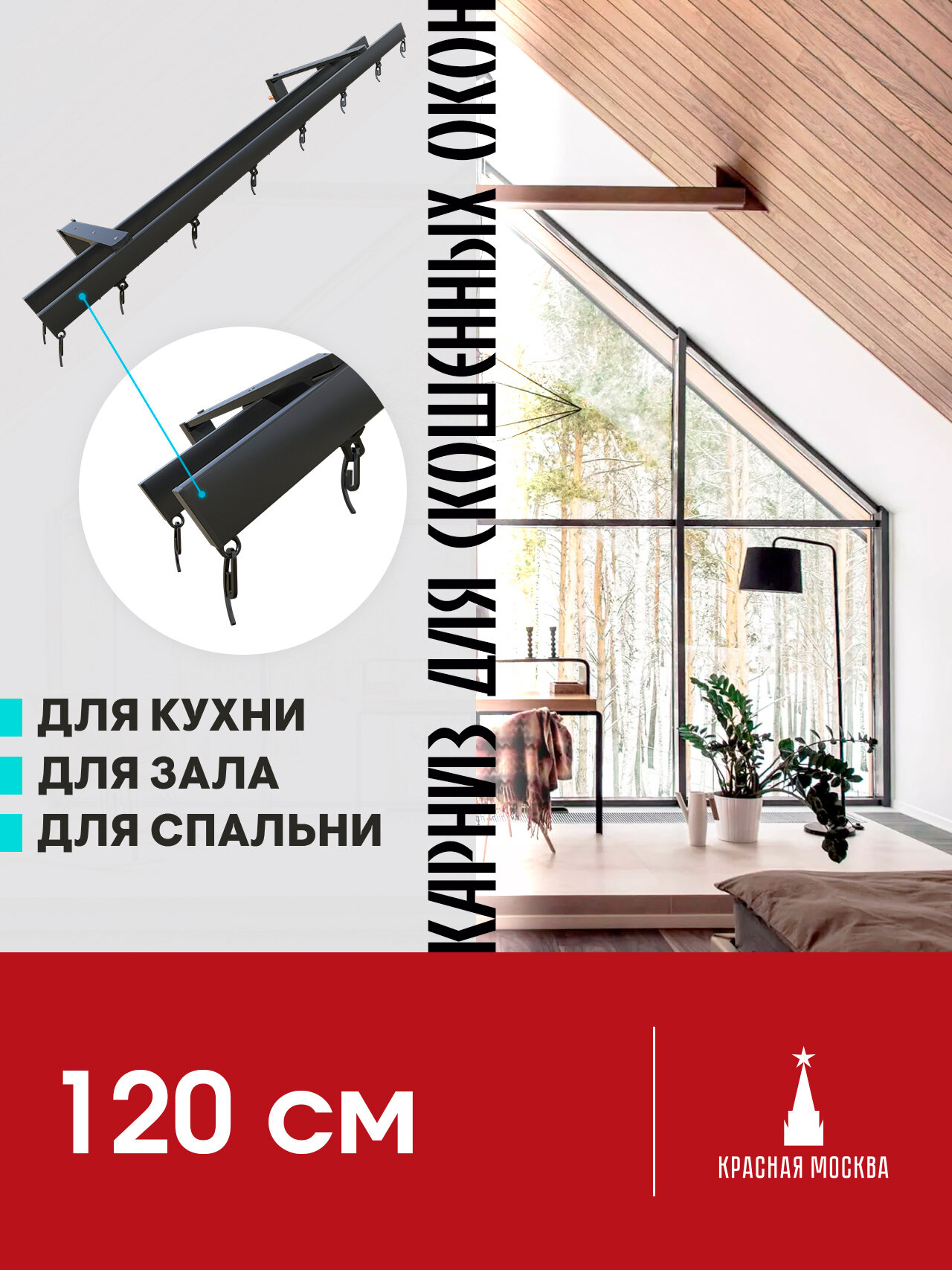 Карниз для штор на скошенные окна, Черный 1 ряд. Для мансардных или диагональных окон, 120 см 2 400 ₽
