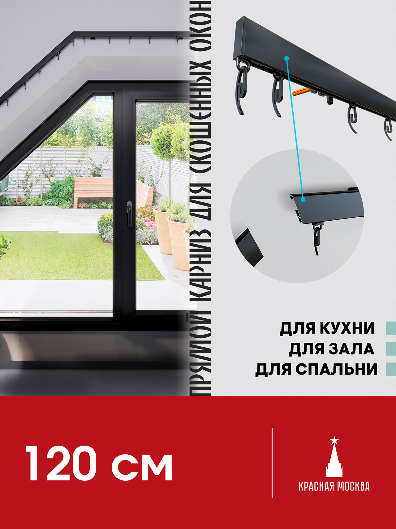 Карниз для штор на скошенные окна, Черный 1 ряд. Для мансардных или диагональных окон, 120 см 2 400 ₽