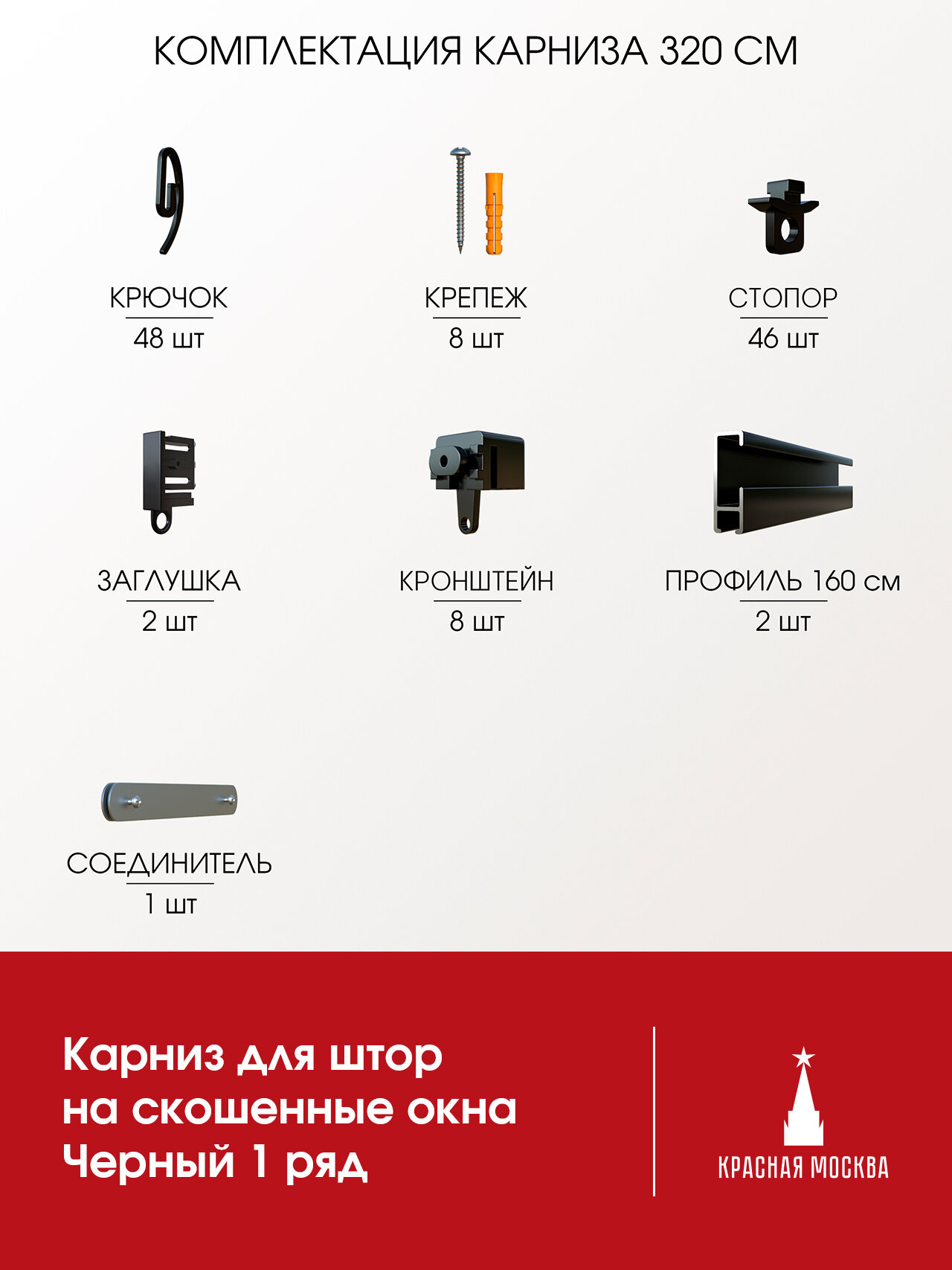Карниз для штор на скошенные окна, Черный 1 ряд. Для мансардных или диагональных окон, 320 см информация: