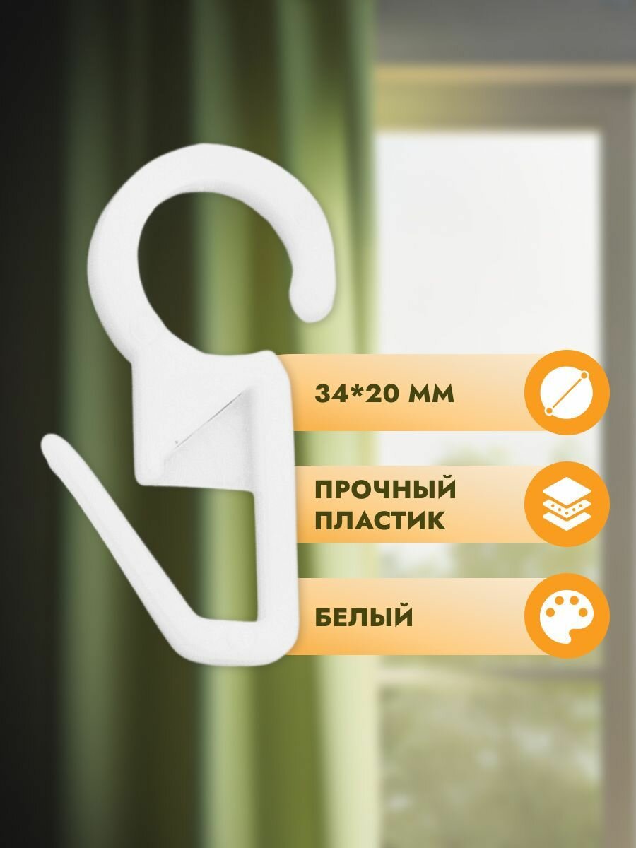 Отзывы на Крючки для штор на кольца, высота 34 мм, 100 шт, пластиковые, белые, Протос