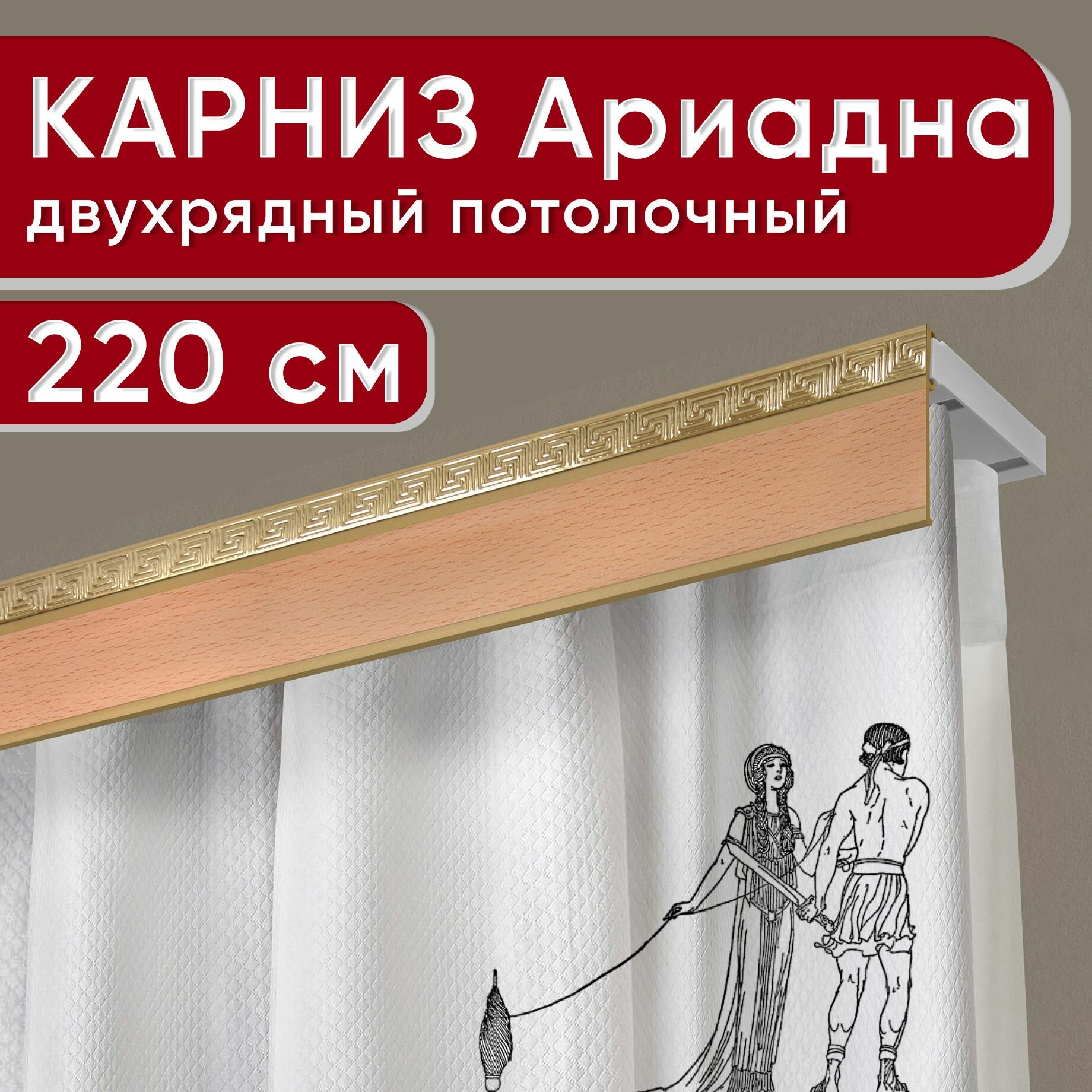 10 цен на Карниз двухрядный потолочный с декоративной планкой, пластмассовый Ариадна, бук 220 см