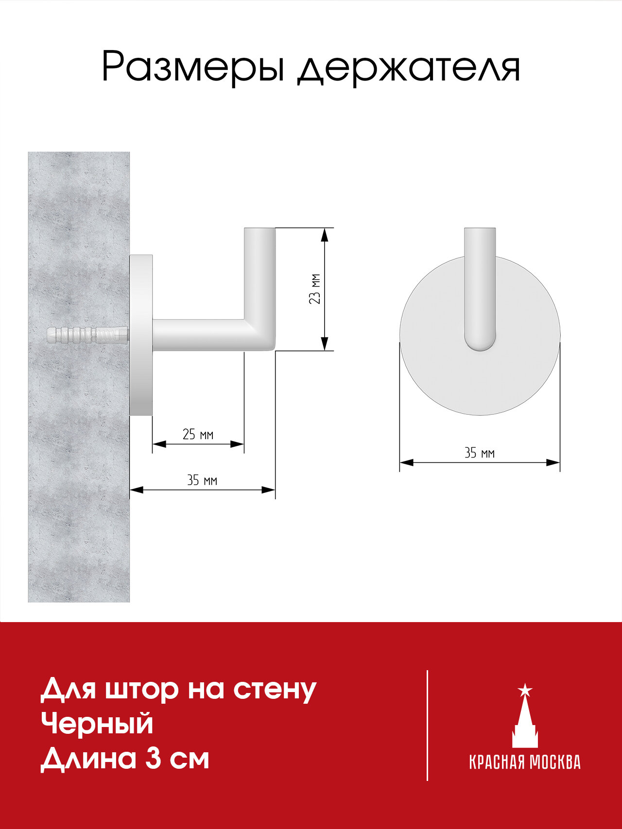 Держатель для штор на стену Лофт Крючок для подхватов штор матовый Черный 3 см Металлический - 1 шт информация:
