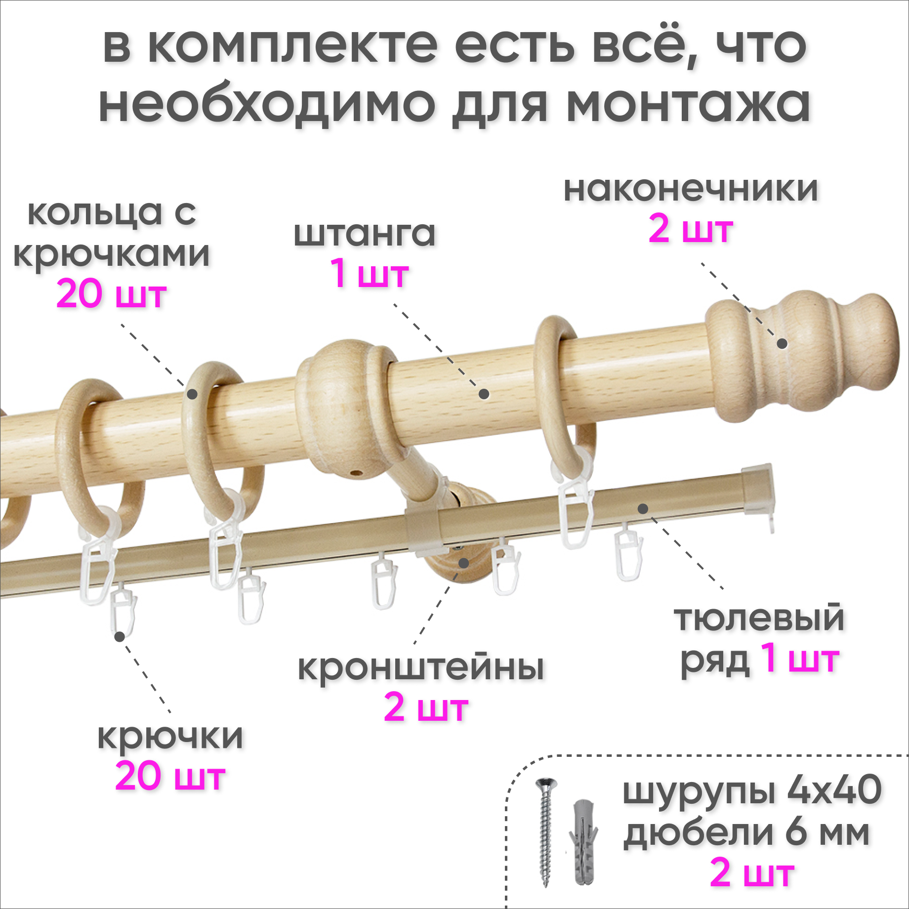 Карниз для штор и гардин деревянный двухрядный цвет Натура 200 см информация: