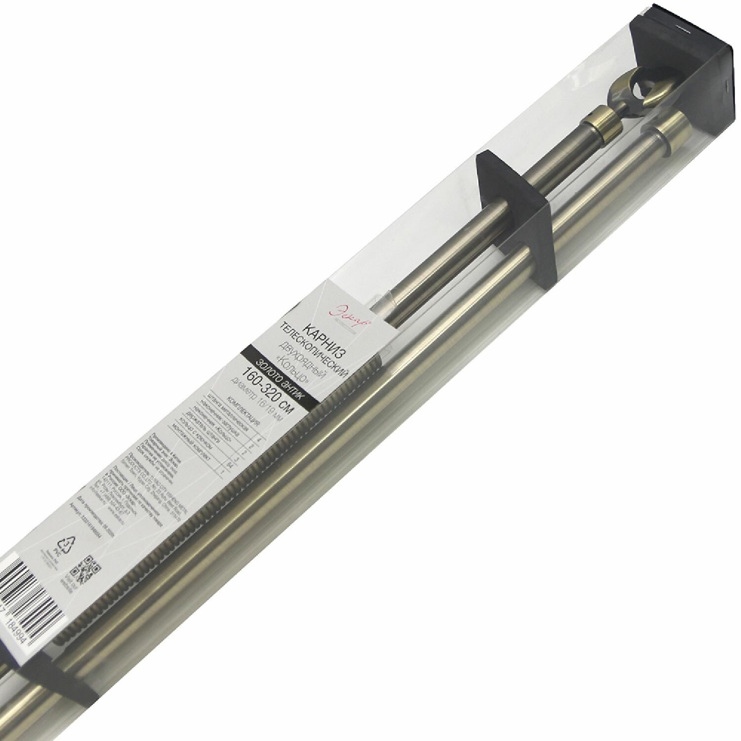 Отзывы на Карниз двухрядный Эскар телескопич, наконечник кольцо, 160-320 см, золото антик
