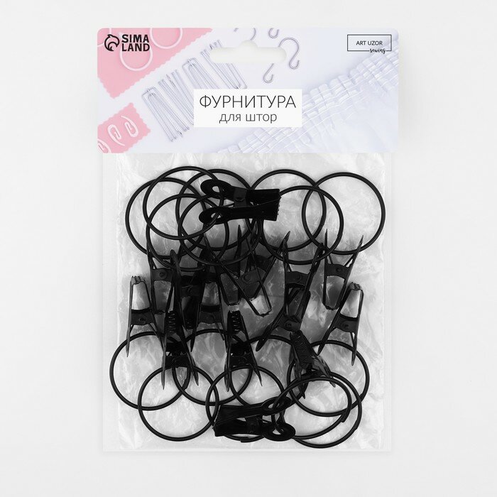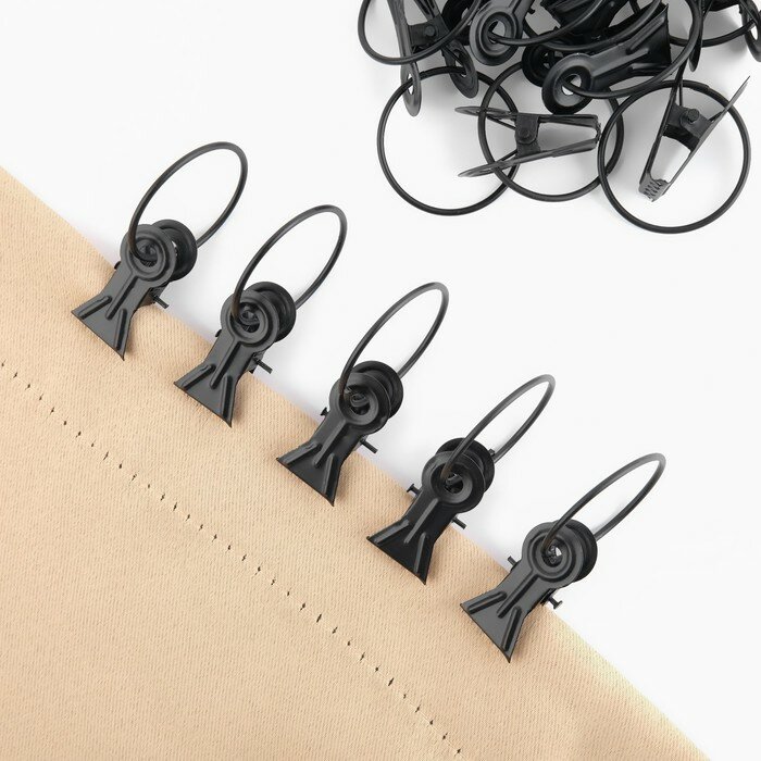 10 цен на Кольцо для карниза, с зажимом, d = 32/36 мм, 20 шт, цвет чёрный