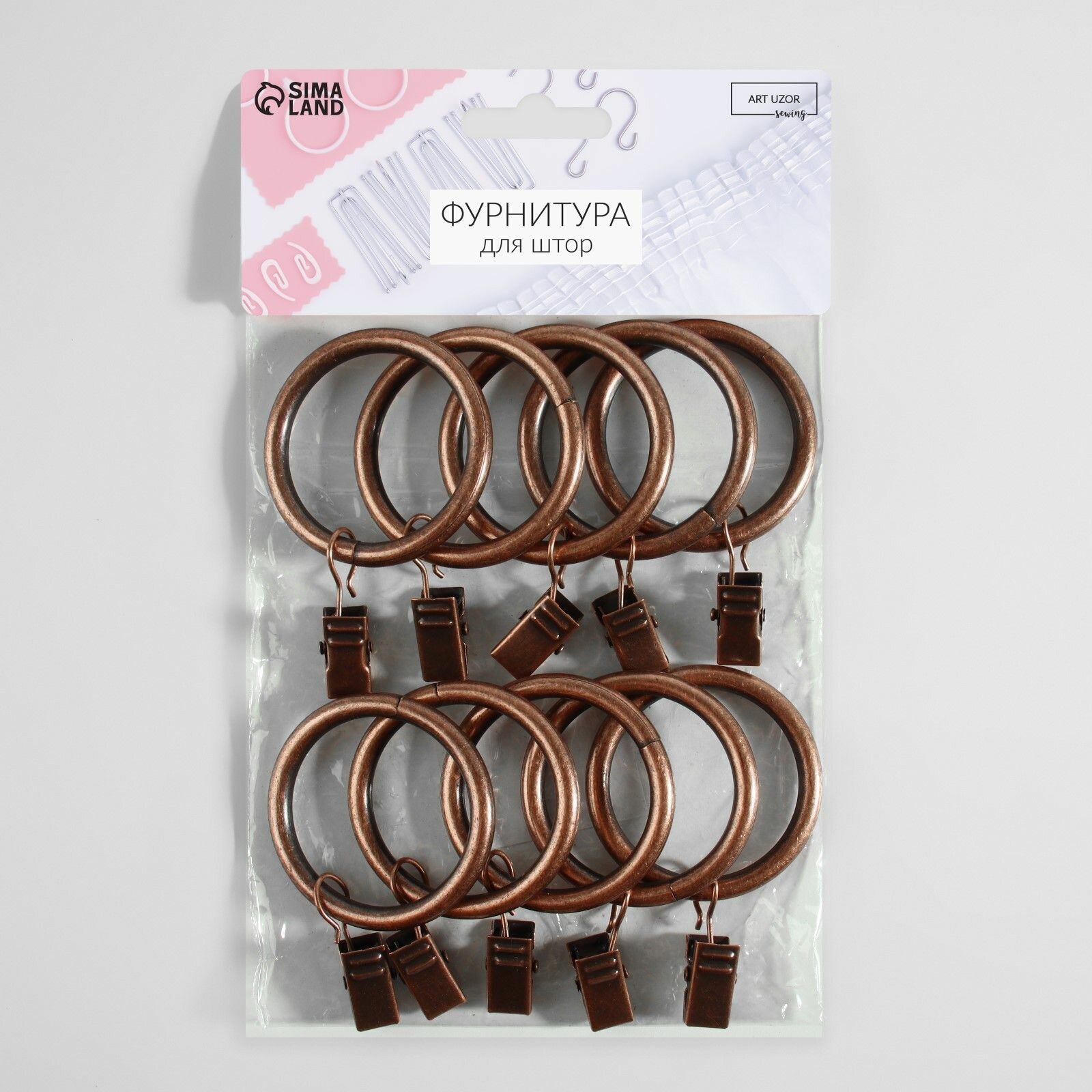 10 цен на Кольцо для карниза, с зажимом, d 38/48 мм, 10 шт, цвет бронзовый