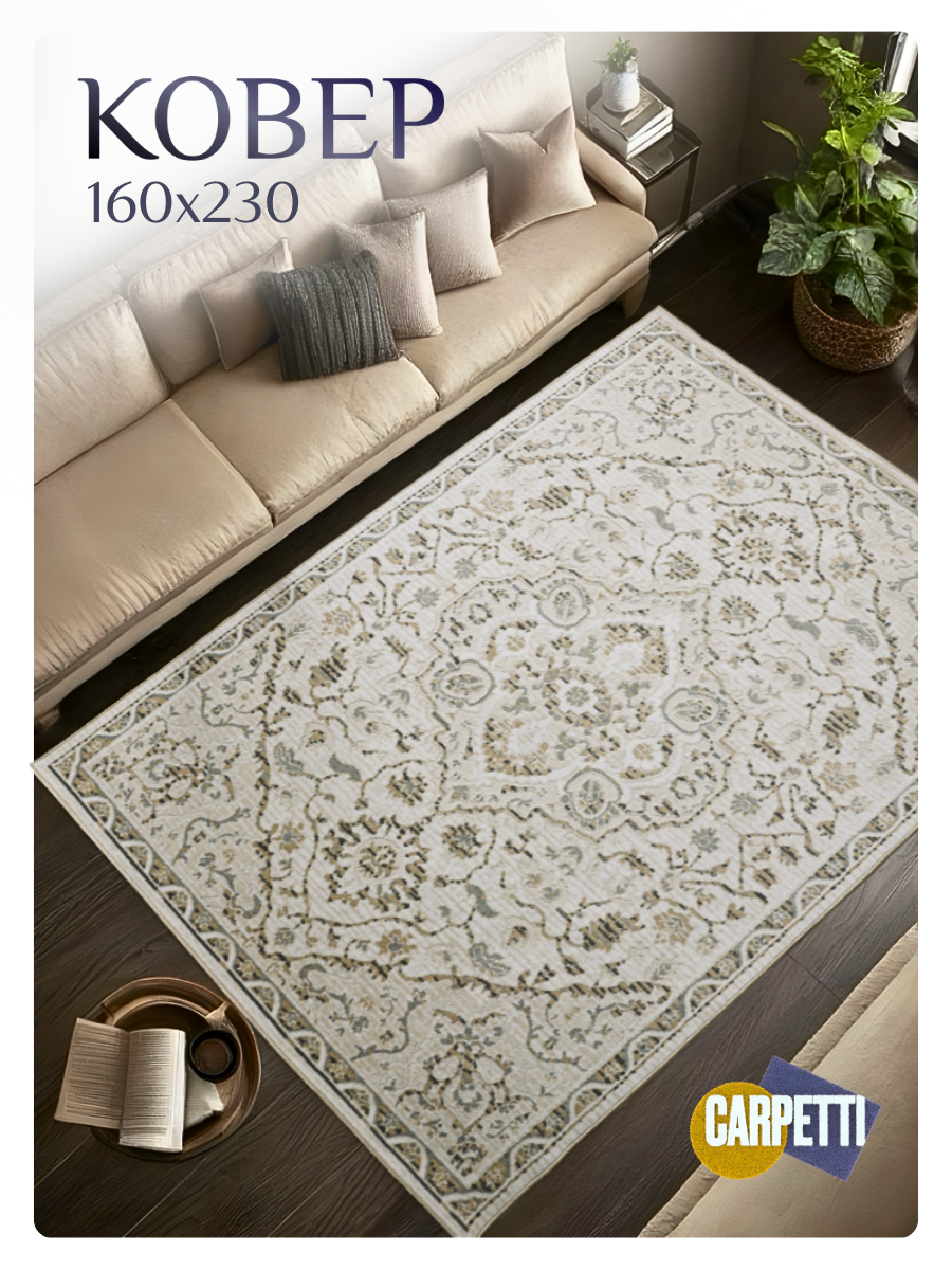 Ковер комнатный гипоаллергенный, износоустойчивый, 160х230 см, кремовый информация: