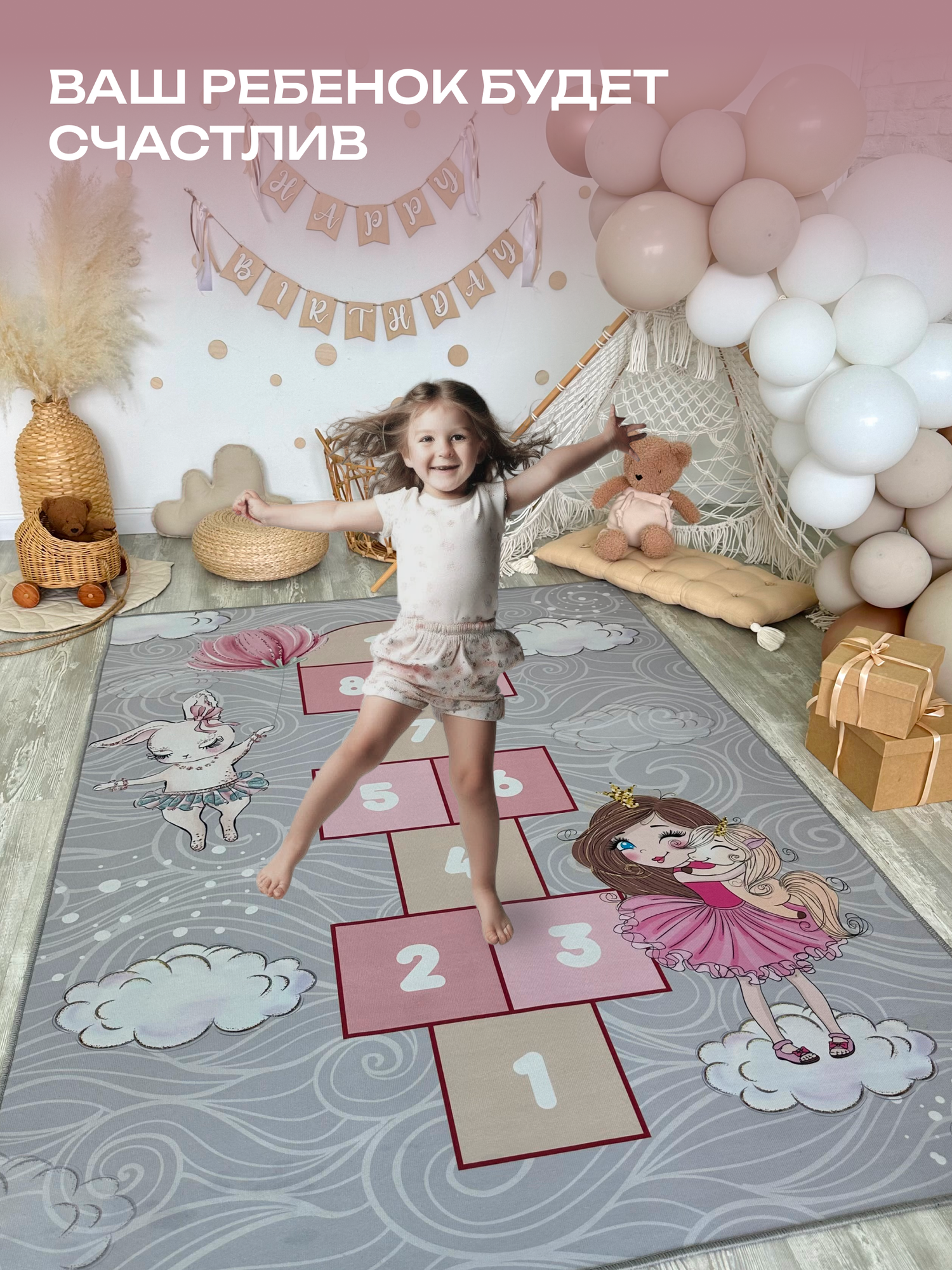 Ковер в детскую комнату для девочки , детский коврик для игр "Классики", 160 на 230см. Like_house информация: