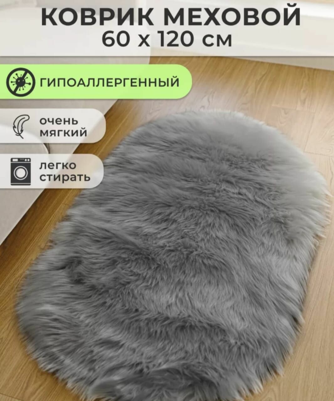 Отзывы на Коврик RiAnt, овальный, серый, с ворсом, противоскользящий, 60 см х 120 см