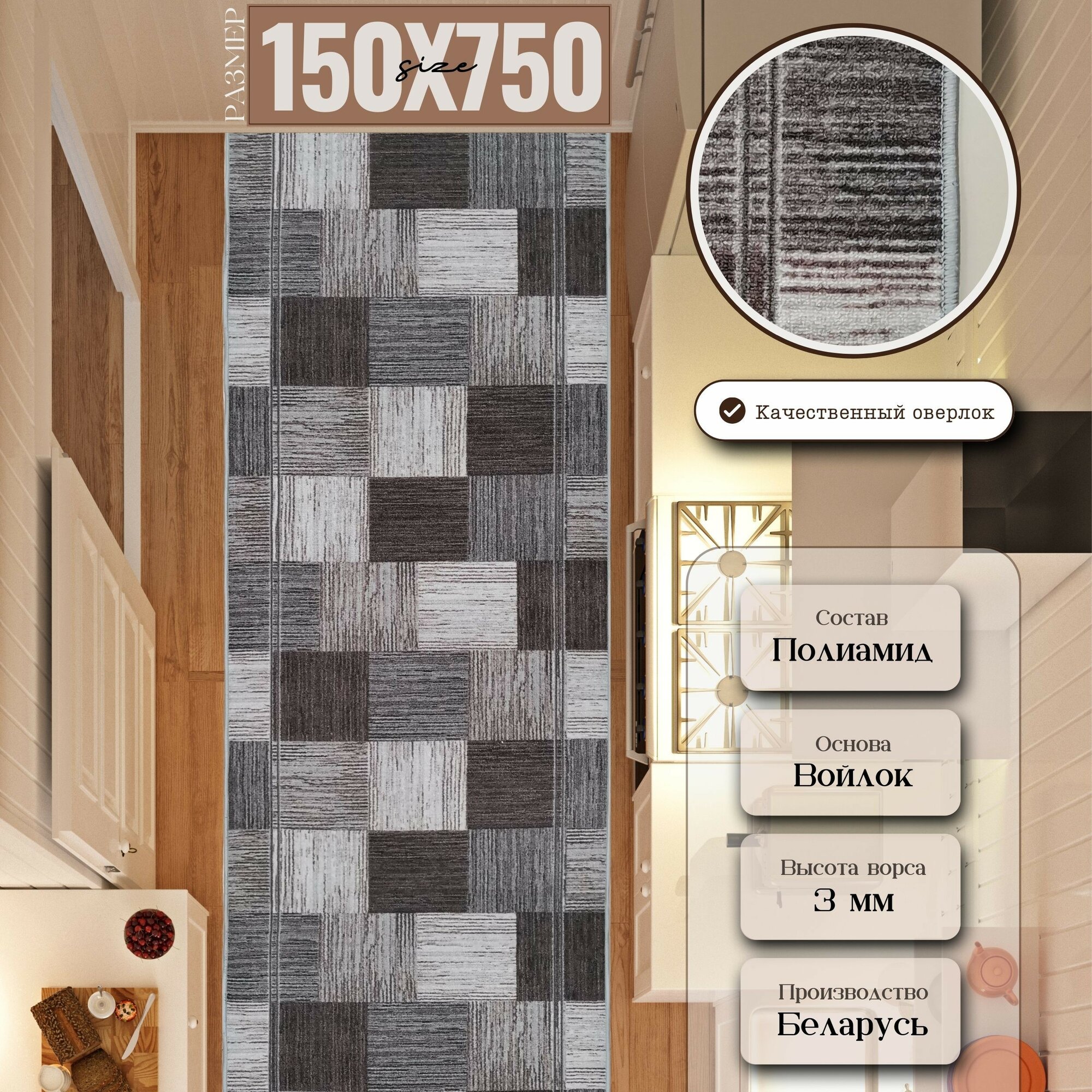 10 цен на Ковровая дорожка на отрез без ворса "Плитка" коричнево-серая 150х750 см + оверлок торцов