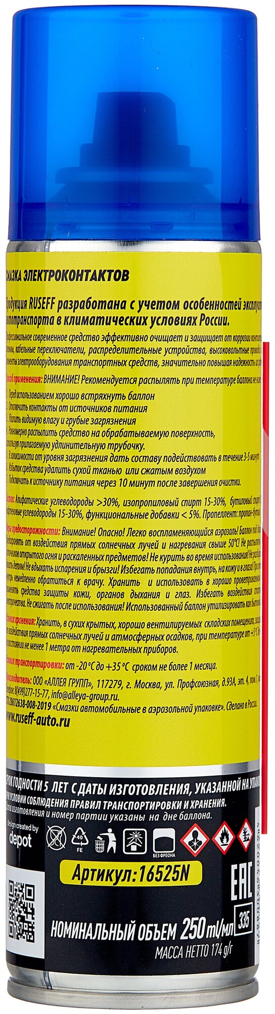 Ruseff Смазка электроконтактов 250 мл /аэрозоль/баллон 335 мл/ 16525N .