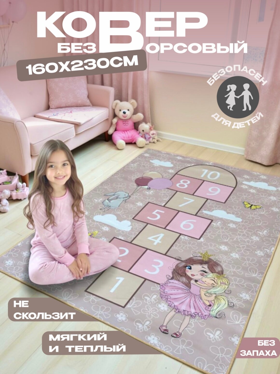 Ковер игровой безворсовый "Классики" в детскую комнату для девочки , детский коврик на пол 160 на 230см. Like_house информация: