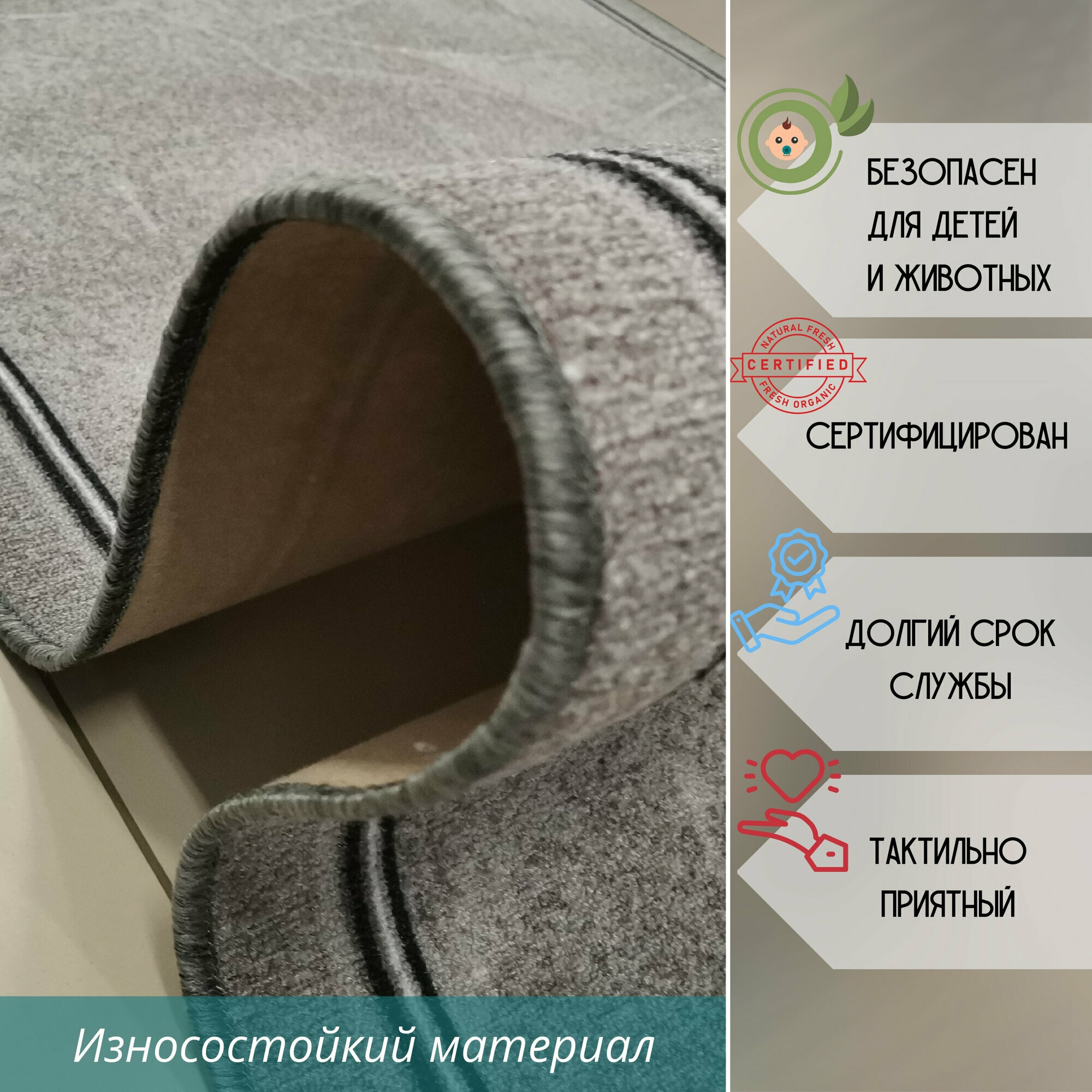 Отзывы на Ковровая дорожка на отрез без ворса "Серый Туман" 80х750 см + оверлок торцов