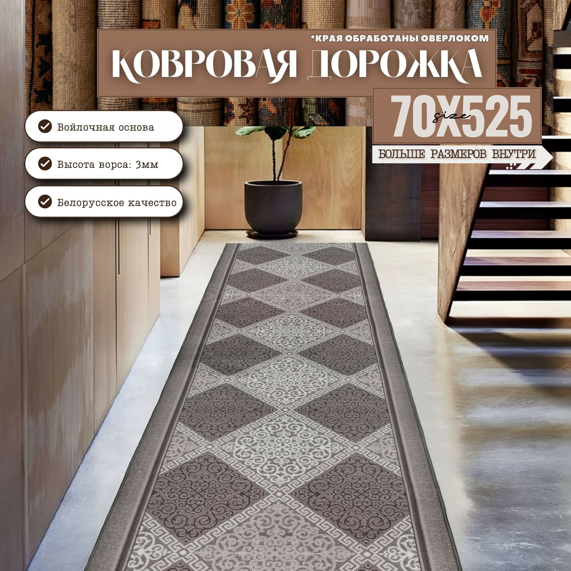 Ковровая дорожка на отрез без ворса "Каскад" 70х525 см + оверлок торцов информация: