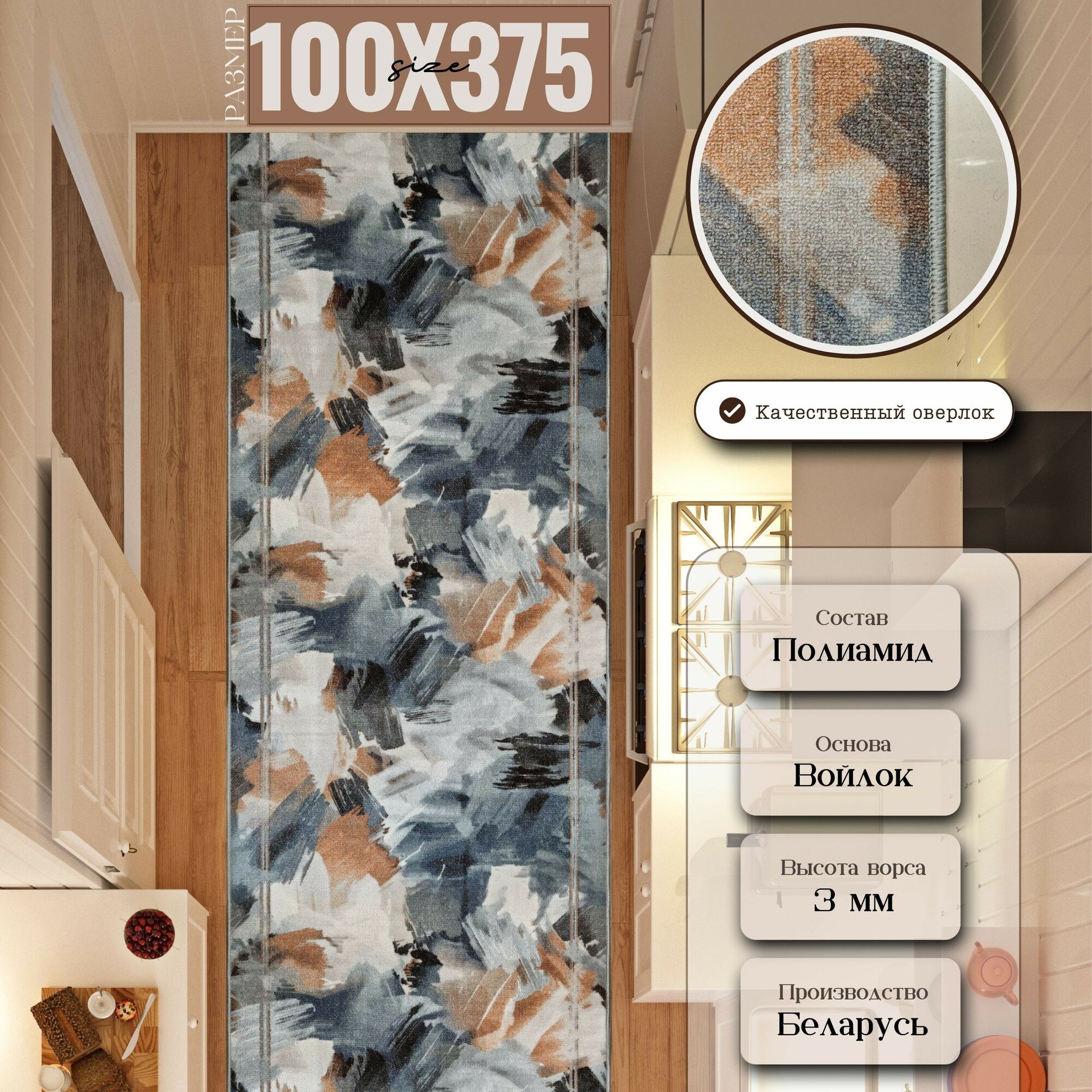 Ковровая дорожка на отрез без ворса "Акварель" 100х375 см + оверлок торцов информация: