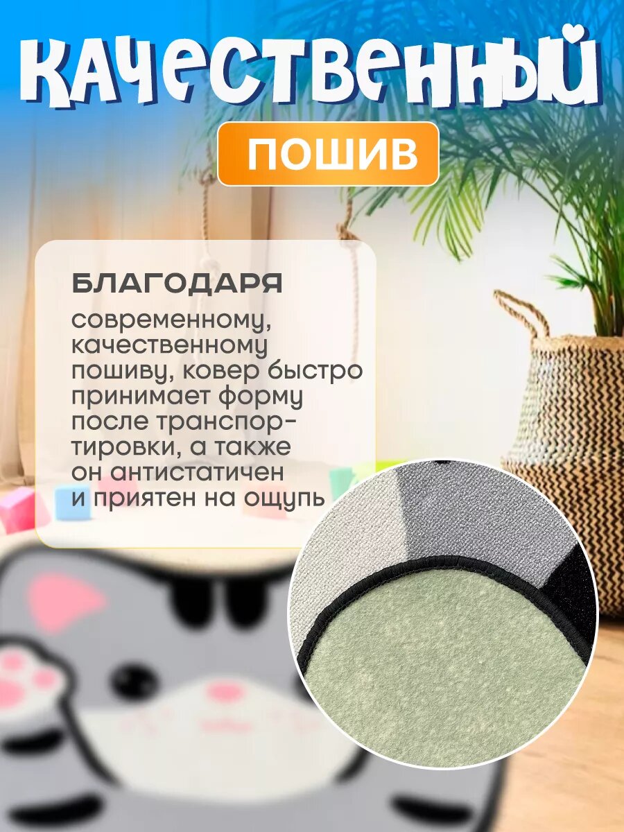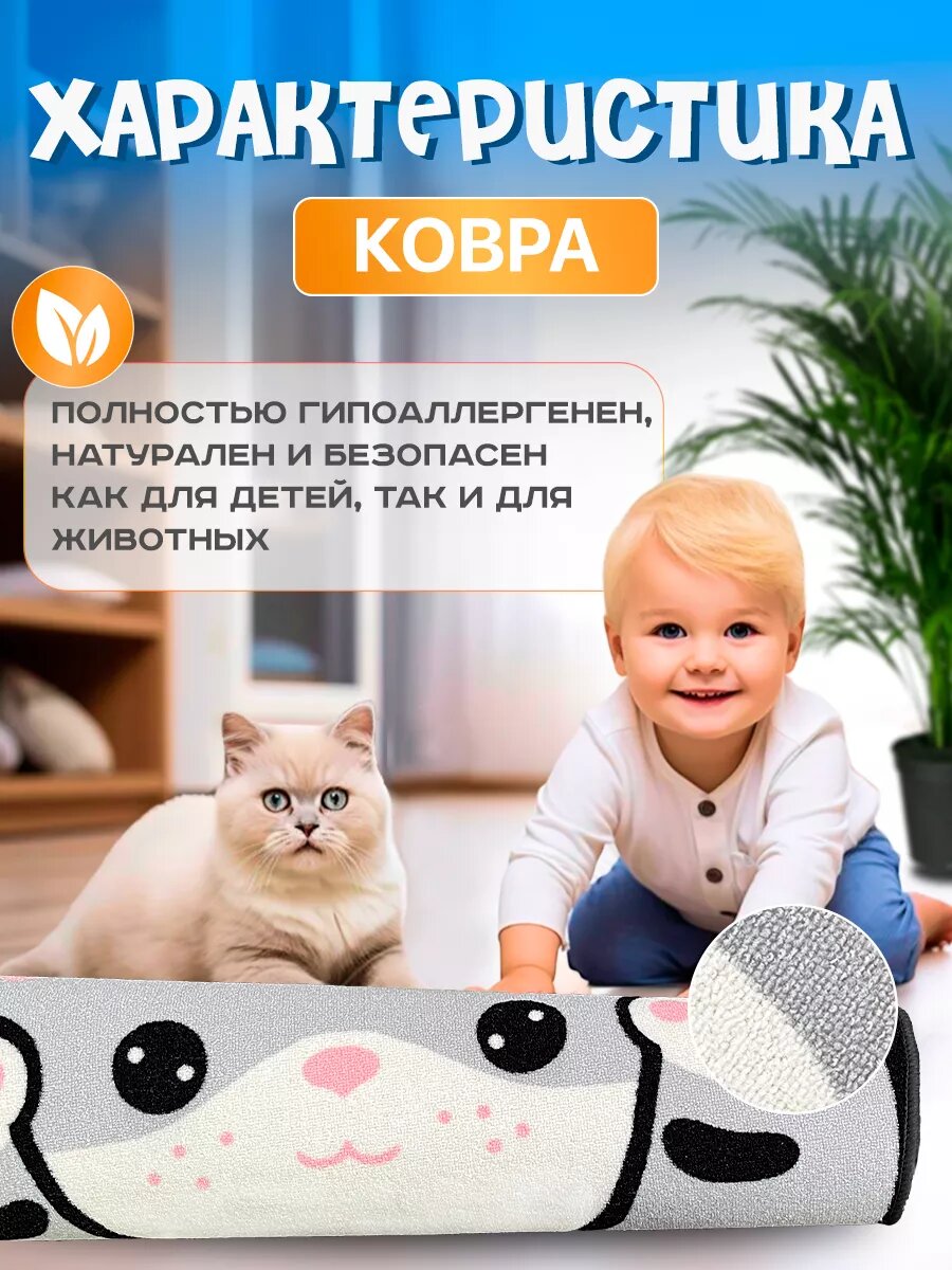 Ковер комнатный для детей, развивающий, гипоаллергенный, 100х150 см, серый котик информация:
