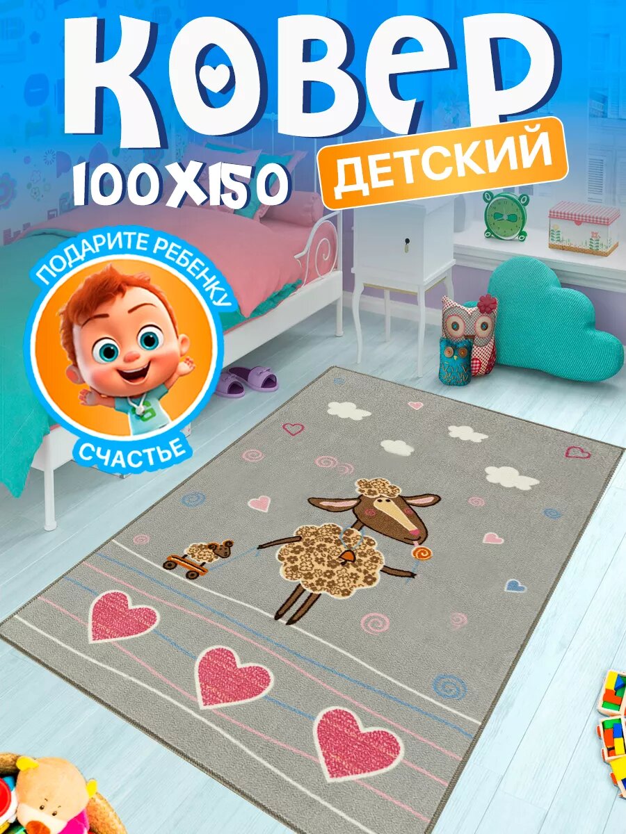 Ковер комнатный для детей, развивающий, гипоаллергенный, 100х150 см, серый/розовый информация: