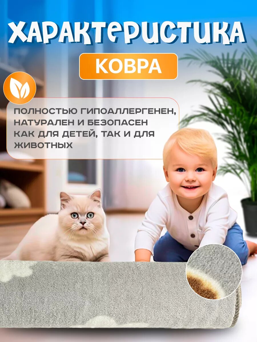 Ковер комнатный для детей, развивающий, гипоаллергенный, 100х150 см, серый котик 1 200 ₽