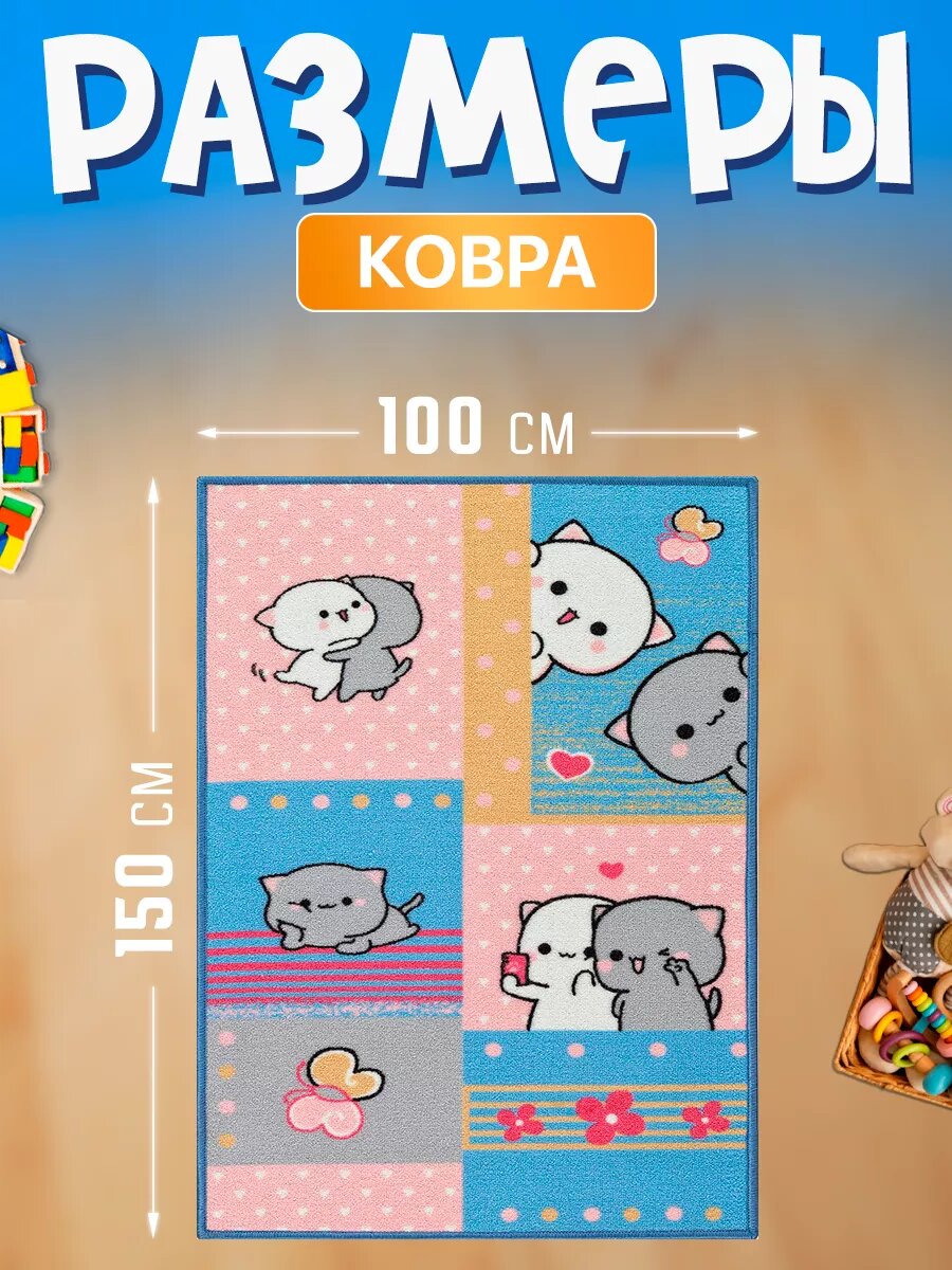 Ковер комнатный для детей, развивающий, гипоаллергенный, 100х150 см, нежно-розовый/голубой информация: