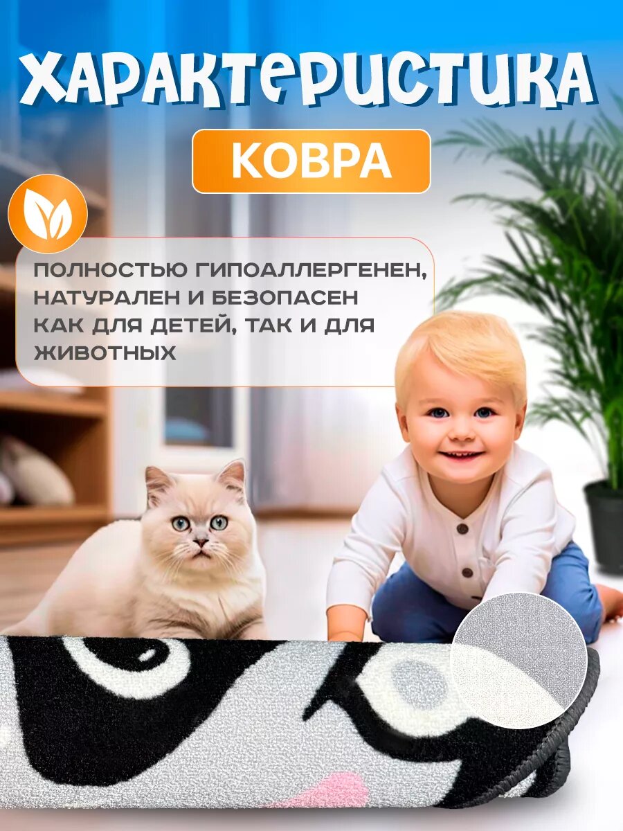 Ковер комнатный для детей, развивающий, гипоаллергенный, 100х150 см, серый котик 1 200 ₽