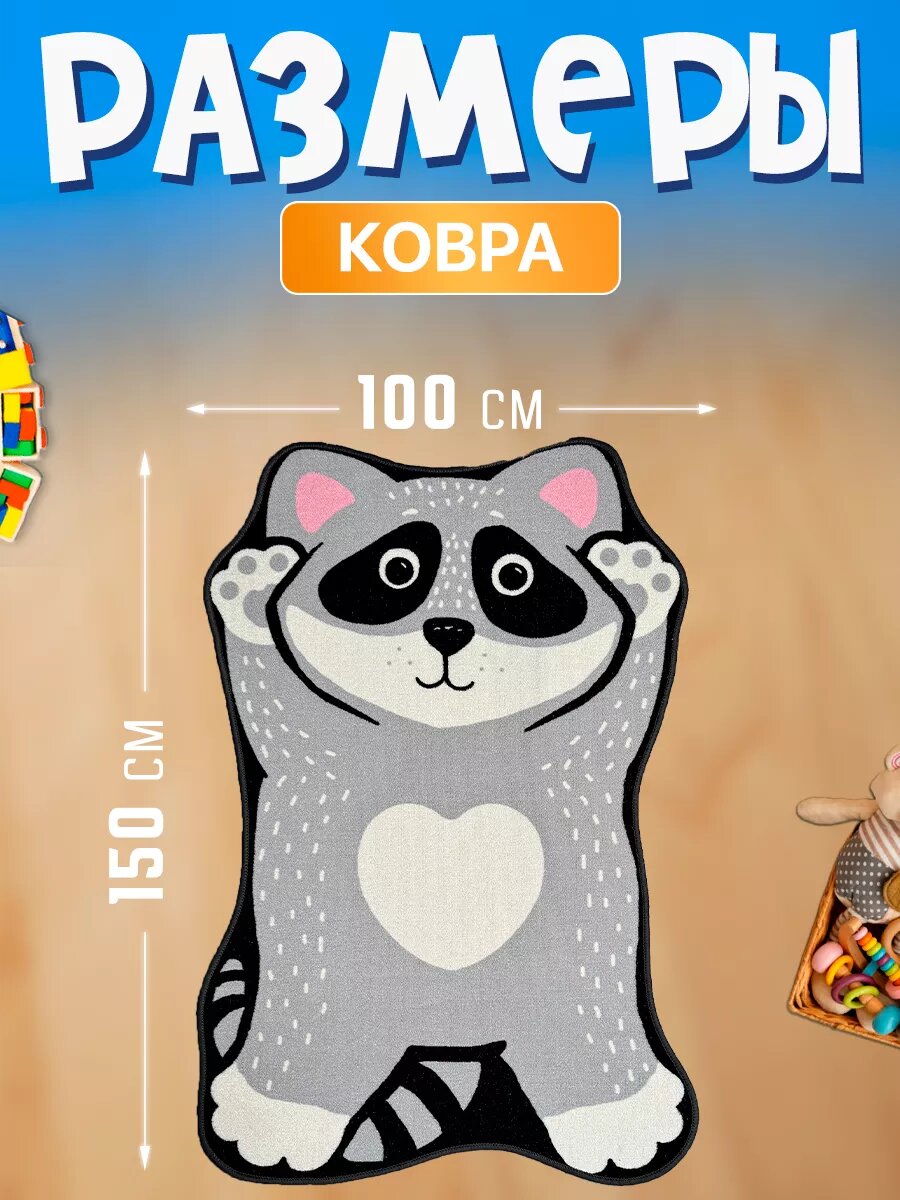 Ковер комнатный для детей, развивающий, гипоаллергенный, 100х150 см, серый енот информация: