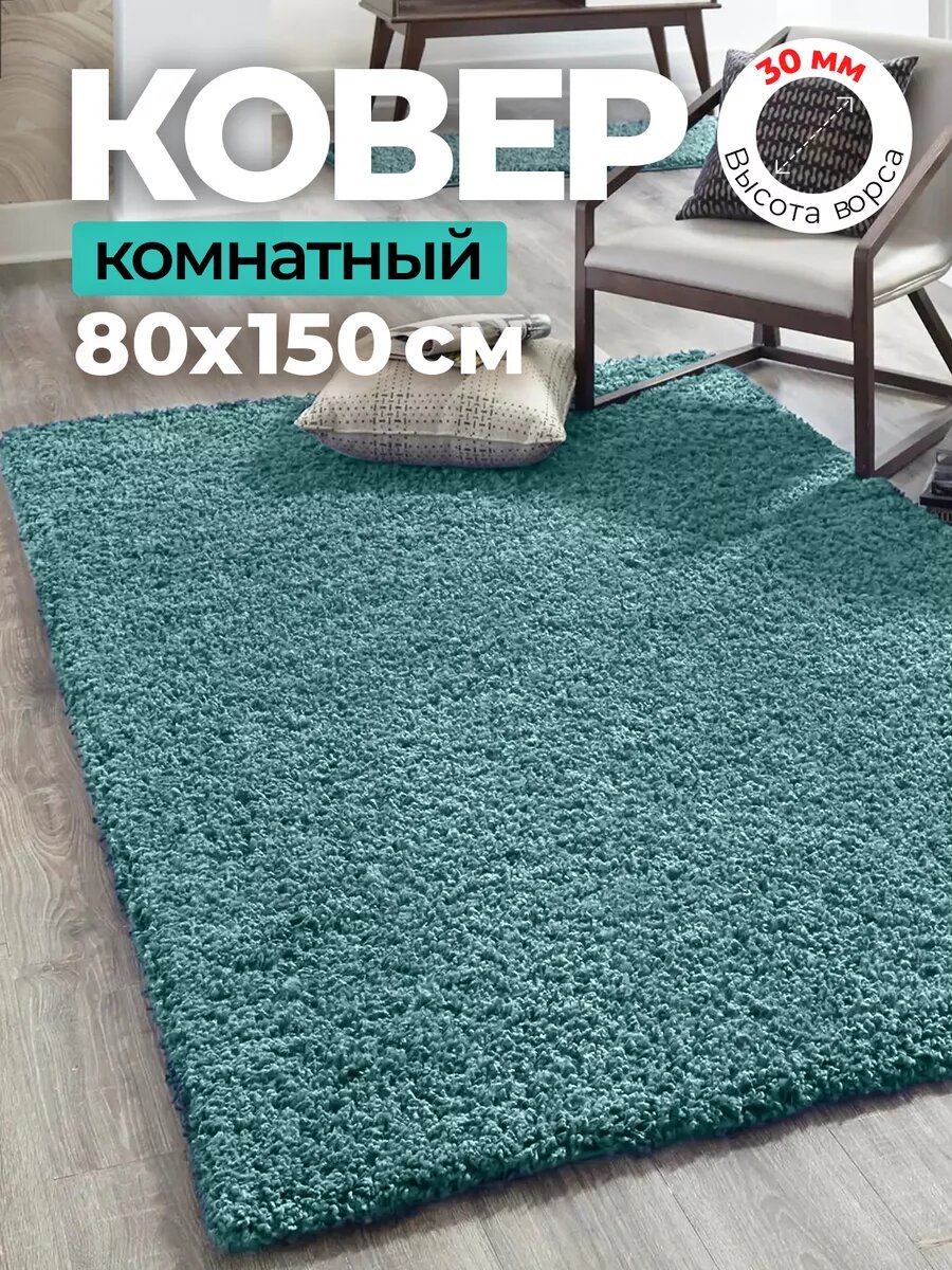 Ковер комнатный на пол Шегги, с высоким ворсом, 80х150 см, бирюзовый информация: