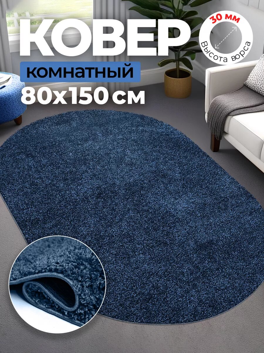 Ковер прикроватный, овальный, с высоким ворсом, 80x150 см, синий информация: