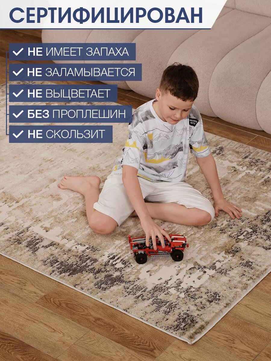 Ковер "Cream-Grey" из Турции, прямоугольный (150x200) в гостиную, зал, спальню, кухню, прихожую, кабинет и комнату