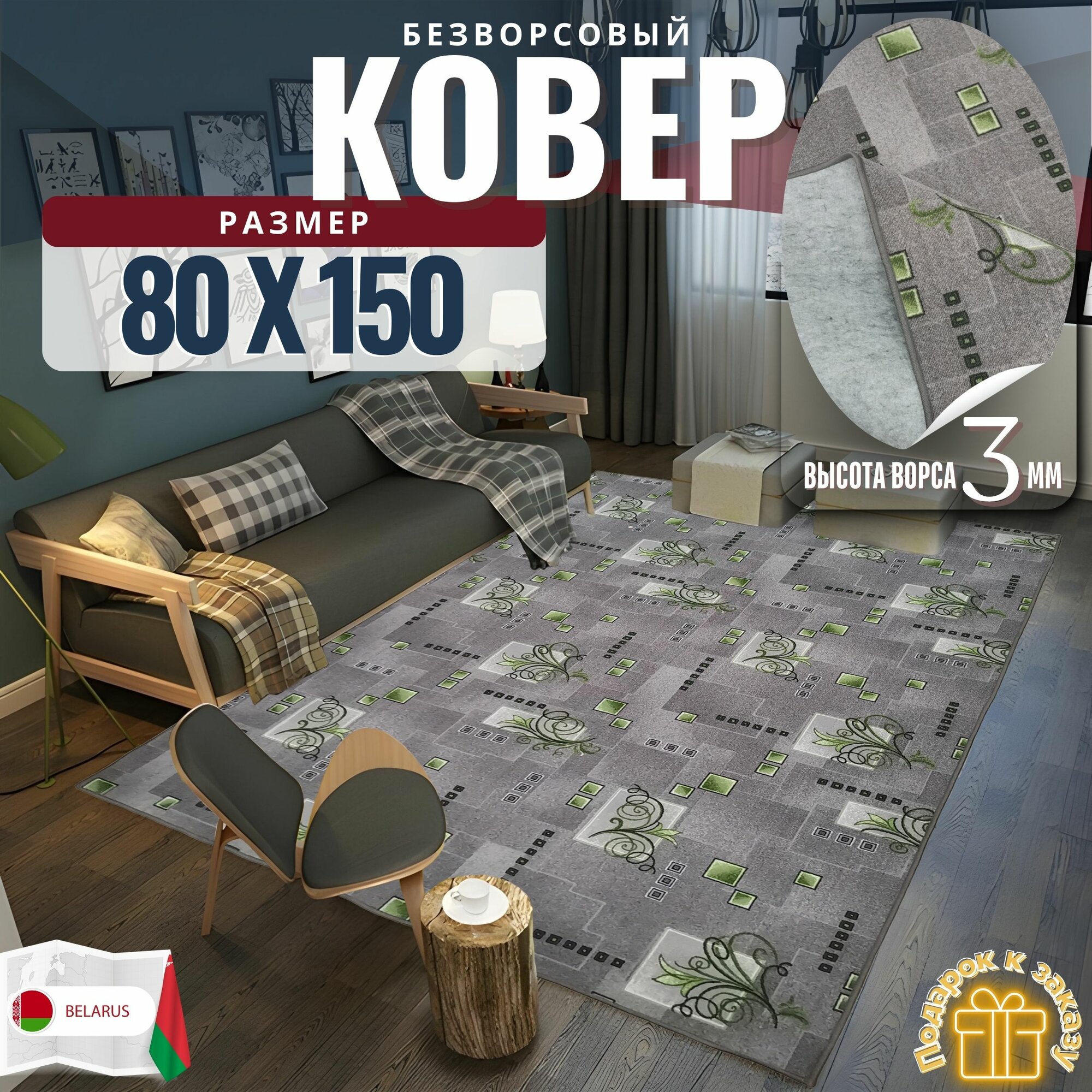 Ковер безворсовой "Узор", зелено-серый на войлоке. Размер 80х150 см информация: