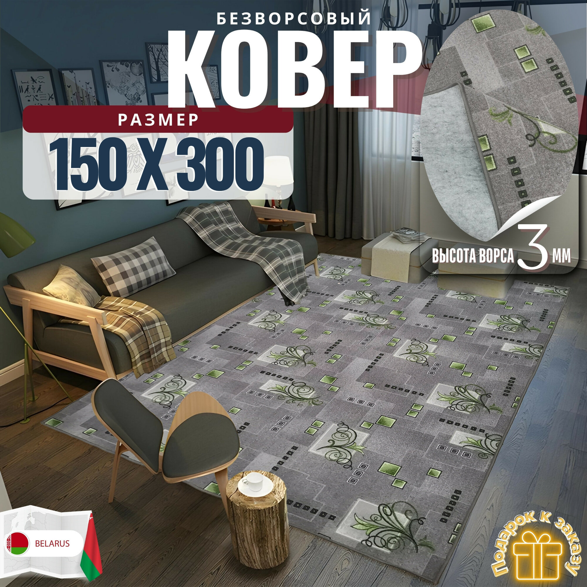 Ковер безворсовой "Узор", зелено-серый на войлоке. Размер 150х300 см информация:
