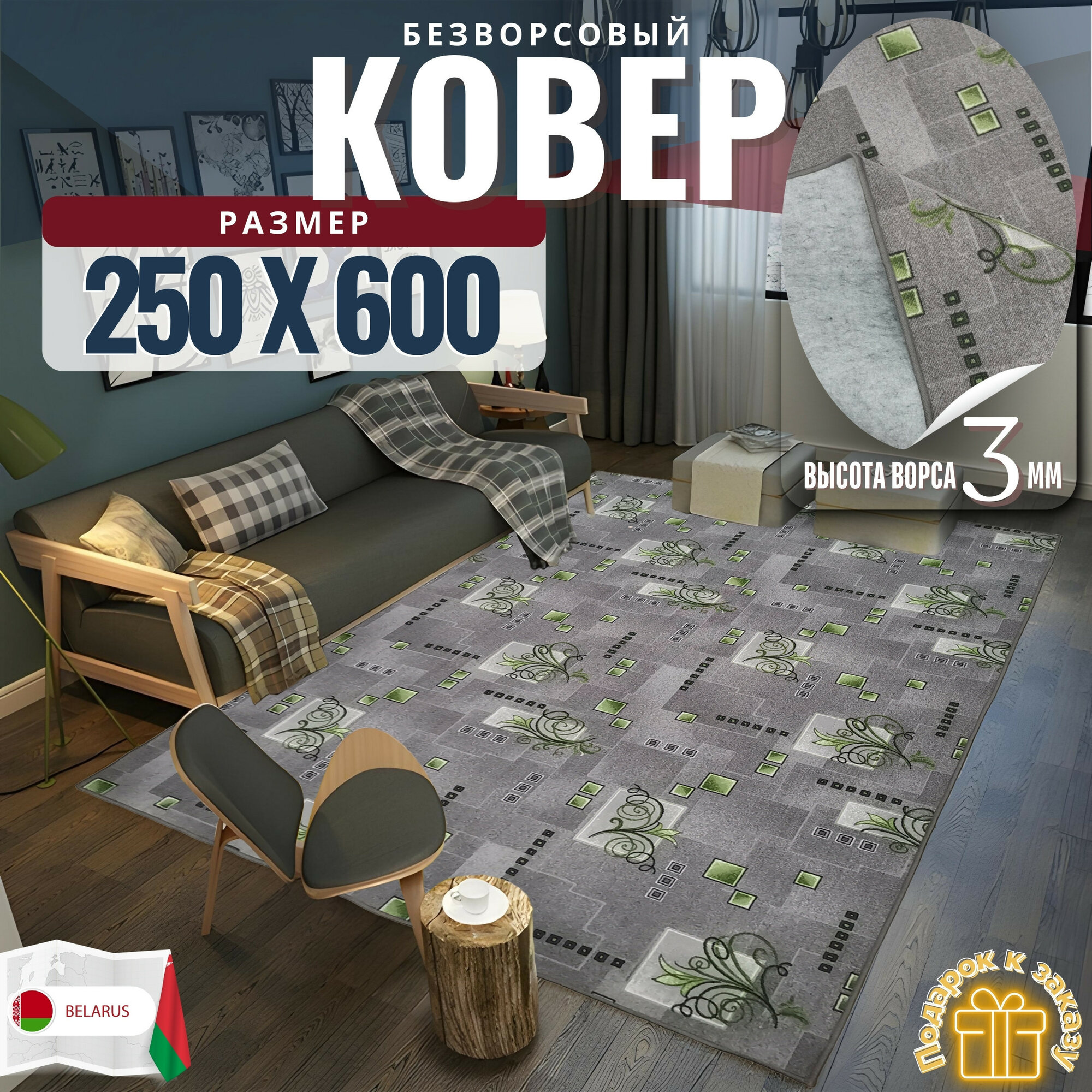 10 цен на Ковер безворсовой "Узор", зелено-серый на войлоке. Размер 250х600 см