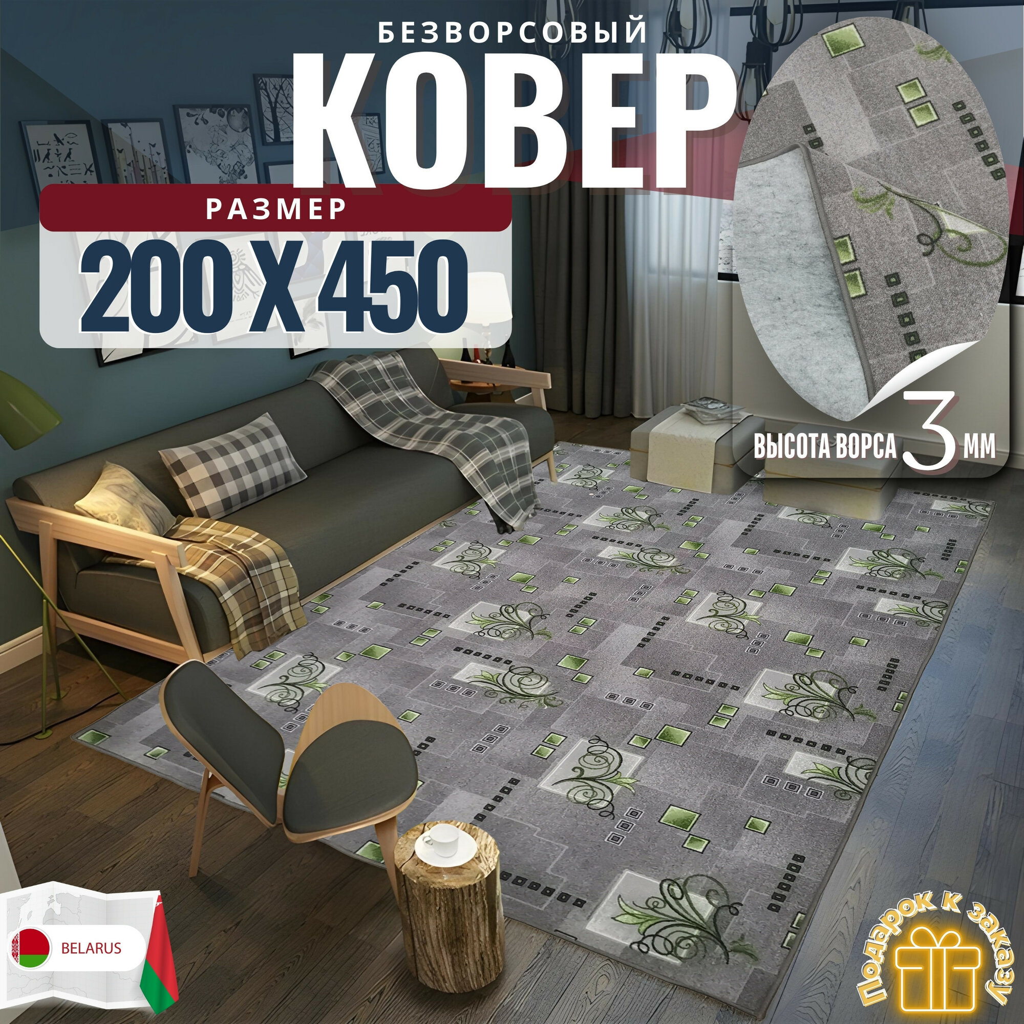 Ковер безворсовой "Узор", зелено-серый на войлоке. Размер 200х450 см информация: